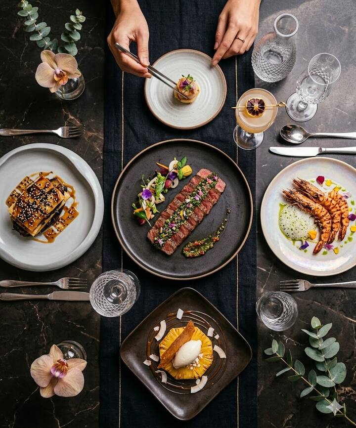 Stebėkitės ant ugnies gaminamu maistu, pasižyminčiu ryškiais Azijos virtuvių deriniais. Mėgaukitės daugiau nei 4 patiekalų valgiais, į kuriuos įeina apdegintas baklažanas su miso glazūra ir sezamu, kepsninės krevetės su česnakiniu sviestu ir žaliosiomis citrinomis, „wagyu“ arba aukščiausios kokybės jautienos nugarinė su „sambal chimichurri“ padažu ir keptomis daržovėmis bei keptas ananasas su palmės cukraus karameliu ir kokosų ledais.