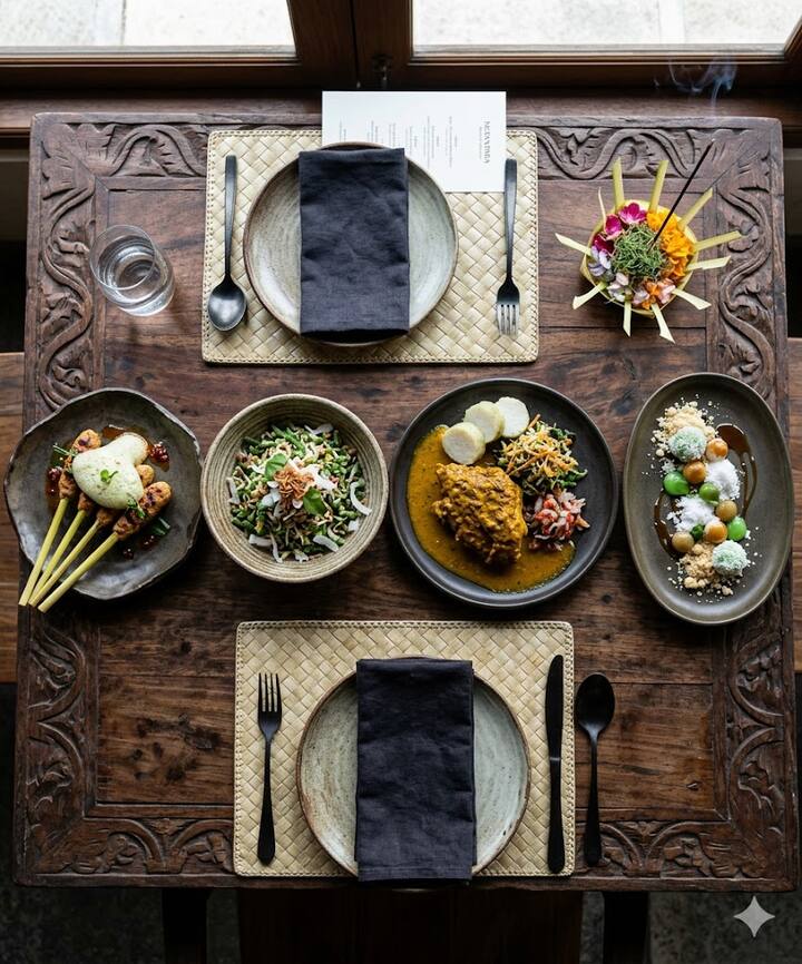 Mėgaukitės tradiciniais skoniais, pateiktais šiuolaikiškai. Į šį 4 patiekalų meniu įeina satė lilit su citrinžolių espuma, lavaro įkvėpta salotos su žolelėmis ir kokosu, lėtai virta ayam betutu su ciberžolių padažu ir ryžių pyragėliu bei dekonstruotas klepon su palmių cukrumi ir kokosu. Patiekalas perteikia autentišką, bet rafinuotą Balio virtuvės istoriją.