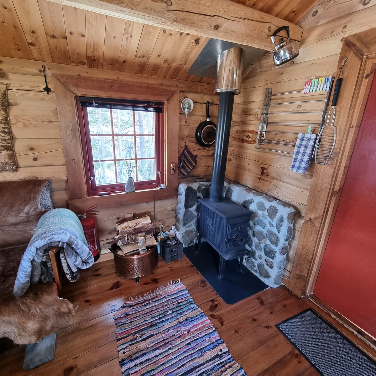 Įkraukite šioje unikalioje ir ramioje vietoje apsistoti. Architekto suprojektuota trobelė yra tiesiai ant vandens krašto. Toli nuo kaimynų. Pabuskite nuo bebrų, plaukiojančių pro šalį, tyrinėkite paukščių gyvenimą, žvejokite vakarienę patys ir mėgaukitės tyla. Trobelė nuomojama paprasta valtimi ir kanoja. Jame yra žuvies patiekalas. Privatus kelias iki pat durų.„Off grid“ su saulės sistema, geras Wi-Fi. Turi būti įnešta vandens. Reikia atsivežti vandens maistui ir gėrimams. Dujos viryklei ir kepsninei. degantis tualetas ir lauko dušas su šildomu vandeniu.