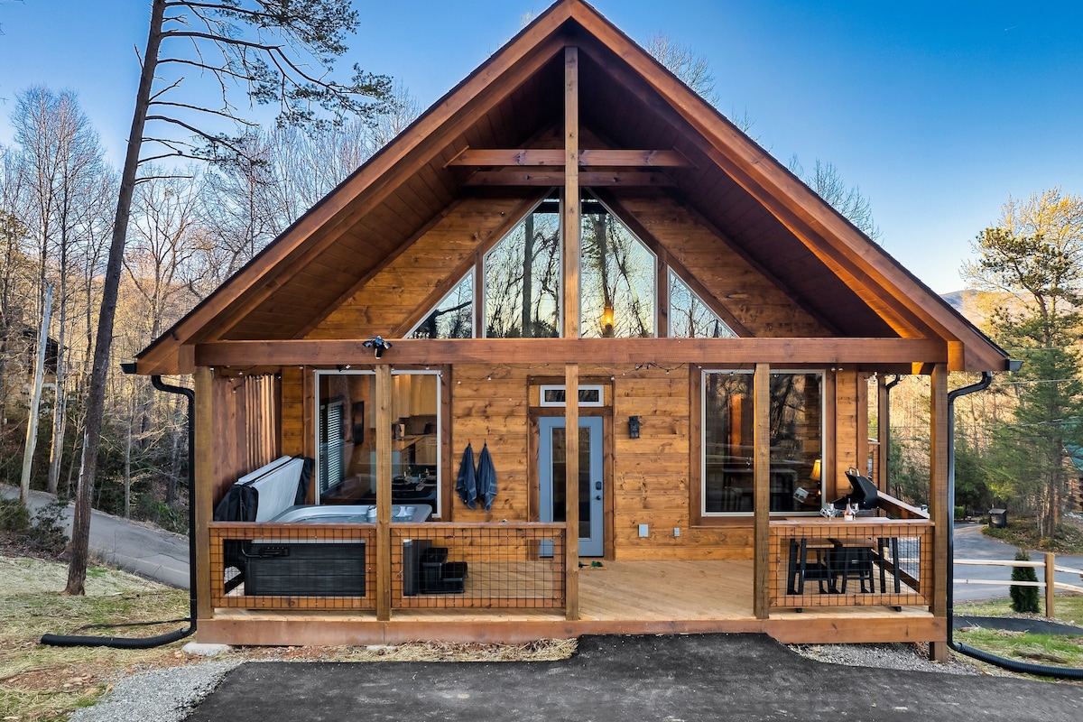 Welcome to StellaLuna A-Frame! A custom-built modern A-frame cabin, just 15 minutes from Gatlinburg and Pigeon Forge, and right outside the Great Smoky Mountains National Park. This brand-new A-Frame offers a luxurious experience with moody, stylish bathrooms and A+ craftsmanship throughout. Enjoy the wrap-around deck, hot tub, games, and music for good vibes. Relax in the elegant outdoor seating area or listen to music on our vinyl record player. Perfect for a unique getaway surrounded by