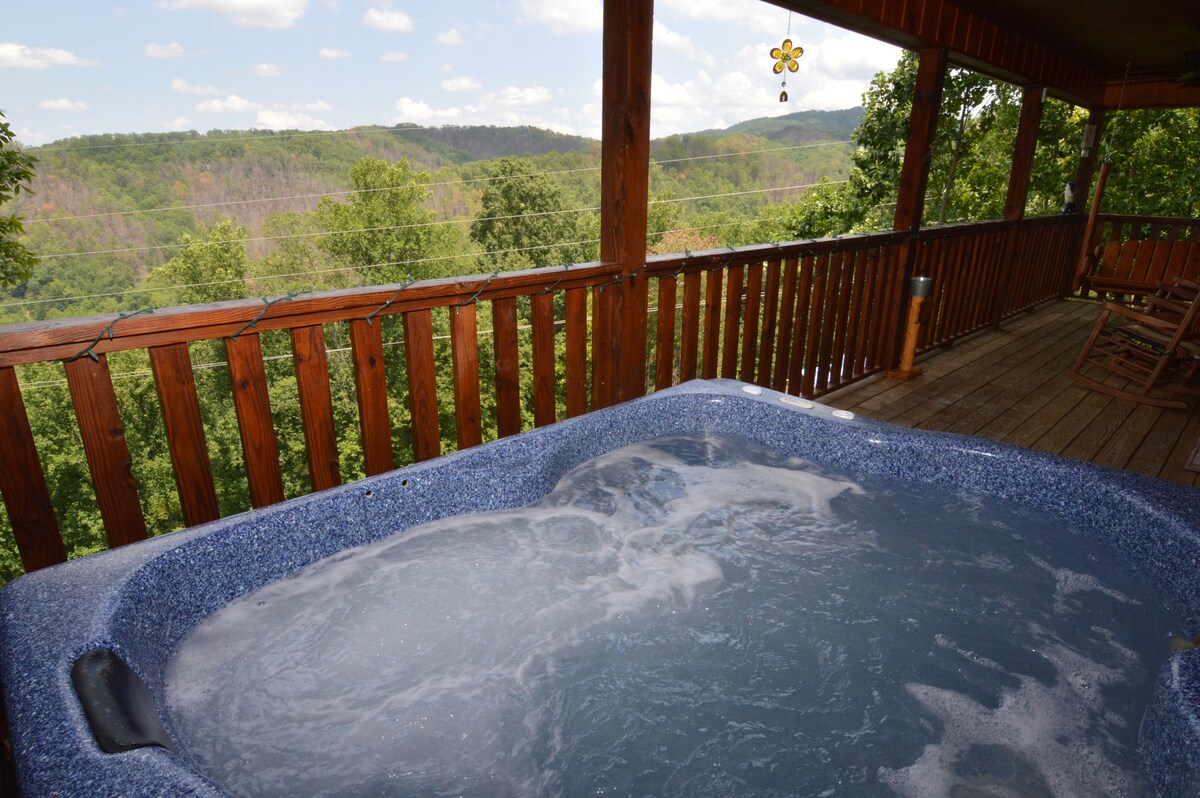 MIELOJO APŽVALGOS AIKŠTELĖ, NUOSTABUS MEDAUS MĖNUO, visiškas privatumas!! 10% nuolaida užsakymui ir viešnagei tuo pačiu mėnesiu VIETA yra nuostabi... Prieš užsakant Padėkos dieną, Kalėdas ir Niujorką, Msg. Aš „The SPUR“ tarp Gatlinburg ir Pigeon Forge! 2 lygiai su 1400 kv. pėdų Apačioje Žaidimų kambarys Labai privatus 1BD/1B puiki pora/maža šeimos trobelė su vaizdu iš kalno viršūnės. Labai lengva nuvažiuoti iki trobelės, kurioje yra tik du „Twistee“. Įsikūręs tik už 2 mylių nuo Gato centro arba už 3 1/2 mylių nuo PF ir labai privatus.