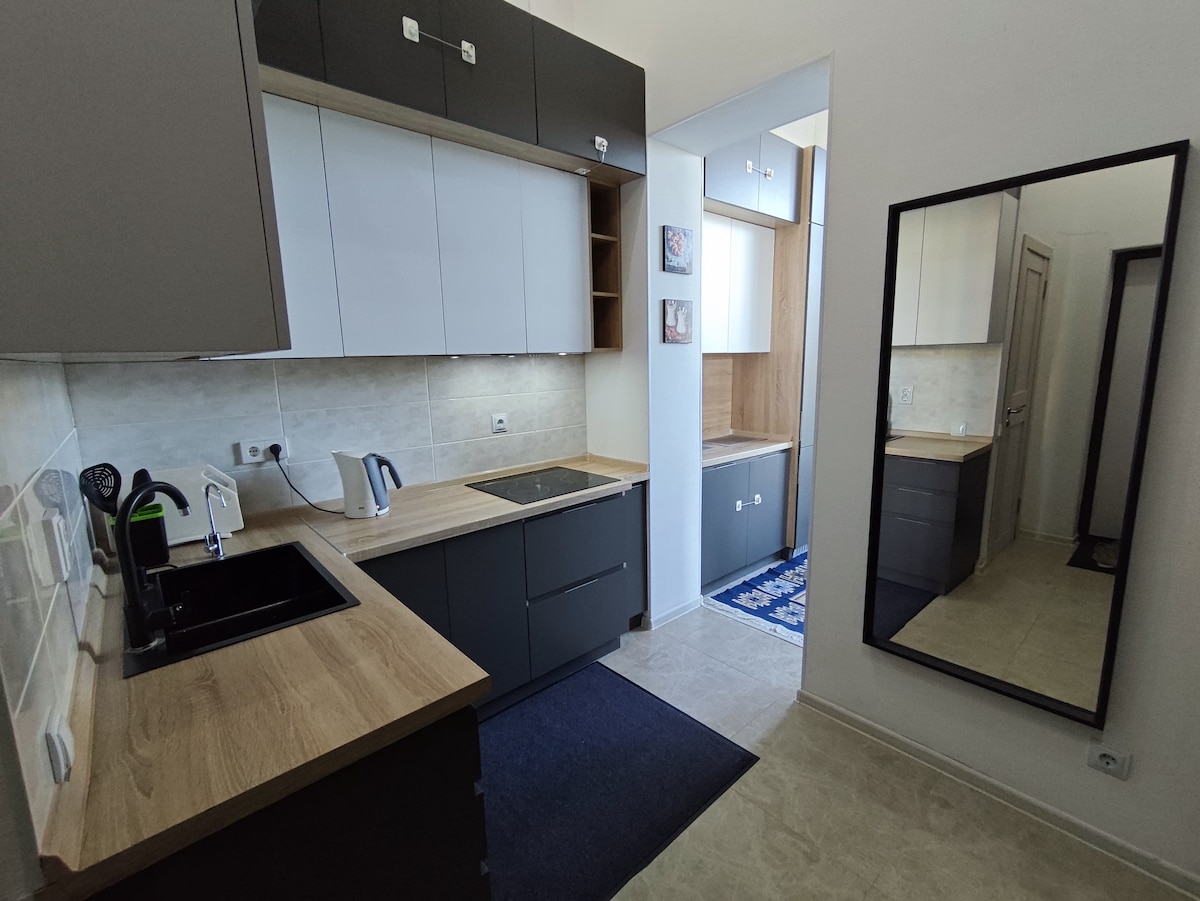 Pabuskite gaivaus miško ore ir pažvelkite pro panoraminius langus su nepriekaištingu vaizdu šioje stilingoje modernioje studijoje, esančioje pačioje Burabajaus – mėgstamiausio Kazachstano gamtos kurorto – širdyje. Puikiai tinka poroms, pavieniams keliautojams ir šeimoms, norinčioms komforto, ramybės ir lengvai pasiekiamų ežerų, kalnų ir nuotykių lauke. Pasirūpinkite, kad šiame ramiame ir centre esančiame būste viskas būtų paprasta.