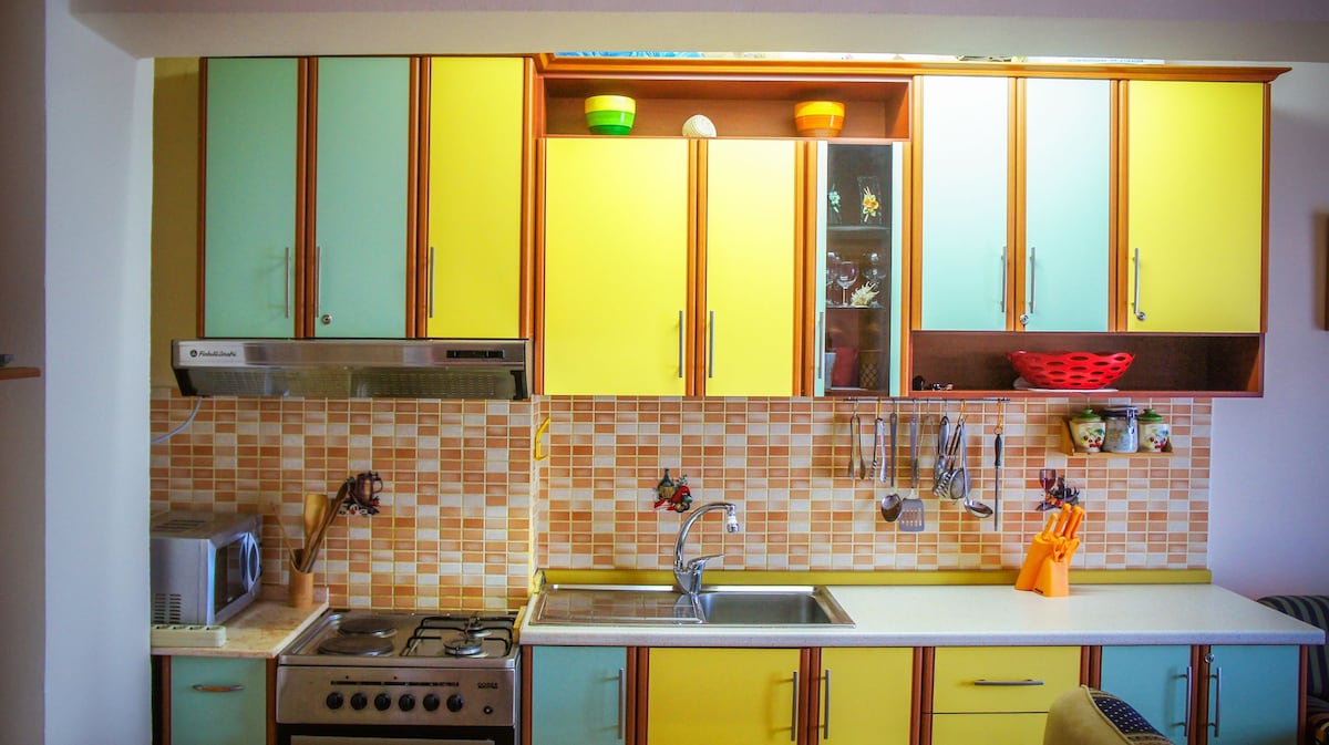 🏡 Buto ypatybės: Valgomasis: jauki valgomojo zona. Miegamasis: atskiras, patogus miegamasis su dvigule lova ir dviaukšte lova. Vonios kambarys: su dušu. Gyvenamoji zona: bute yra sofa-lova . Virtuvė: gerai įrengta virtuvė su virykle, šaldytuvu ir visais reikalingais virtuvės reikmenimis . Skalbimo mašina Pramogos: mėgaukitės plokščiaekraniu televizoriumi . Oro kondicionierius: bute yra oro kondicionierius .