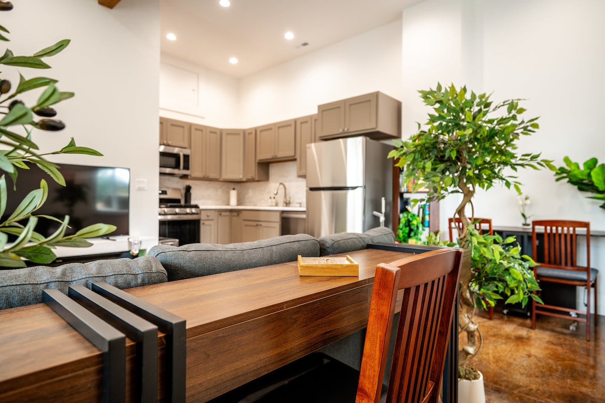 Ženkite į „The Onyx at The Main Exchange“ – rafinuotiausius „Sheridan“ apartamentus miesto centre, kur pramoninis elegantiškumas susitinka su kinematografiniu dizainu. Iš šio nuotaikingo, kruopščiai suprojektuoto lofto atsiveria panoraminiai Main Street vaizdai, jis pasižymi turtingomis tekstūromis ir rafinuota apdaila. Sukurta verslo keliautojams, specialistams ir ilgiau apsistojantiems svečiams, kurie vertina privatumą, architektūrą ir meniškumą, o ne įprastą apgyvendinimą. Kiekviena detalė buvo kruopščiai apgalvota – nuo dizainerio apšvietimo iki atvirų