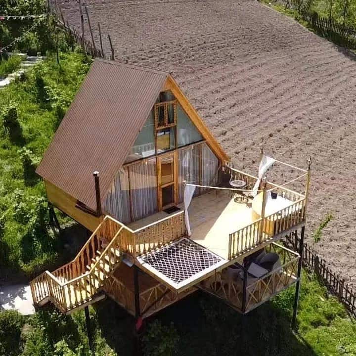 Jaukios A formos trobelės Gomarduli kalnuose — puikus pabėgimas į gamtą. Kiekvienoje trobelėje gali apsistoti iki 4 svečių, joje yra virtuvė, dušas, Wi-Fi, malkinės viryklės šildymas ir terasa su nuostabiais vaizdais. Apsuptas miško ir gryno oro, jis idealiai tinka šeimoms, poroms ar visiems, ieškantiems ramybės.