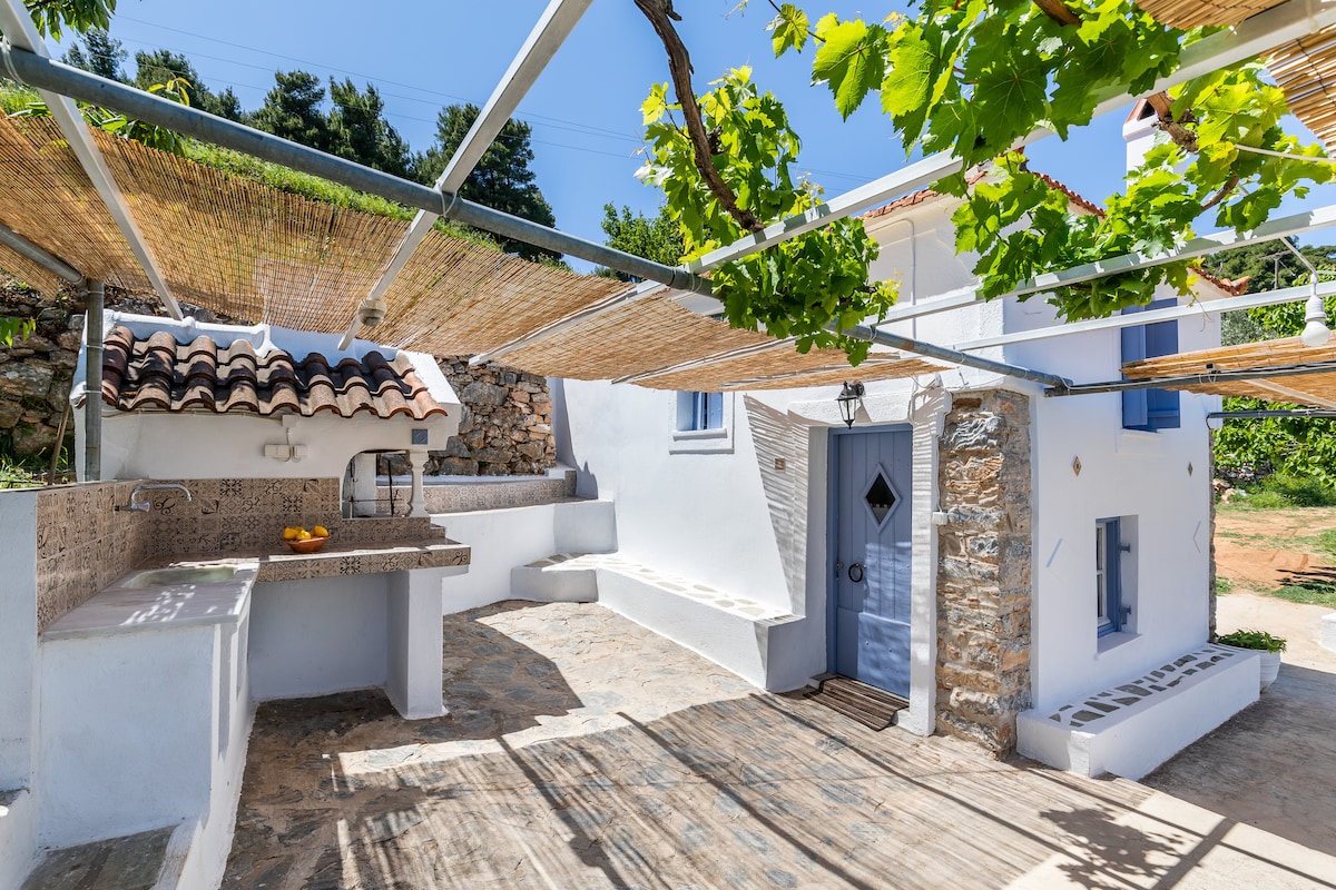 Mėgaukitės viešnage Skopelos saloje, gyvenančia kaimo gyvenimą tradiciniame ir ramiame name. Kiekvieną rytą pabuskite su žalia kalnų ir jūros mėlyna spalva priešais jus. Namas yra kaime, labai gražiame rajone, be automobilio. Čia galite pasivaikščioti ir mėgautis senojo kaimo žavesiu.