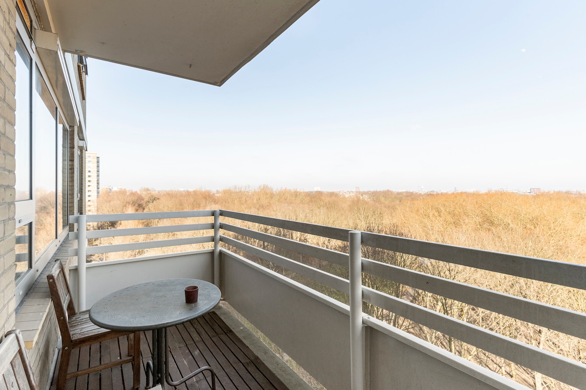 +80m2 apartment - Recently renovated / amazing view. 2 comfortable double beds sleep 4 ppl. 15min from center (pt 5 minutes walking away) 15min from Schiphol (By taxi or train) Street parking available for €20 a day Metro, tram and train nearby Fully equipped kitchen. (Dishwasher, oven, Nespresso, kettle etc) Fully equiped bathroom Fast Wifi Dedicated workspace Large TV with Netflix Balcony with two seats Permit: Z/25/2898701