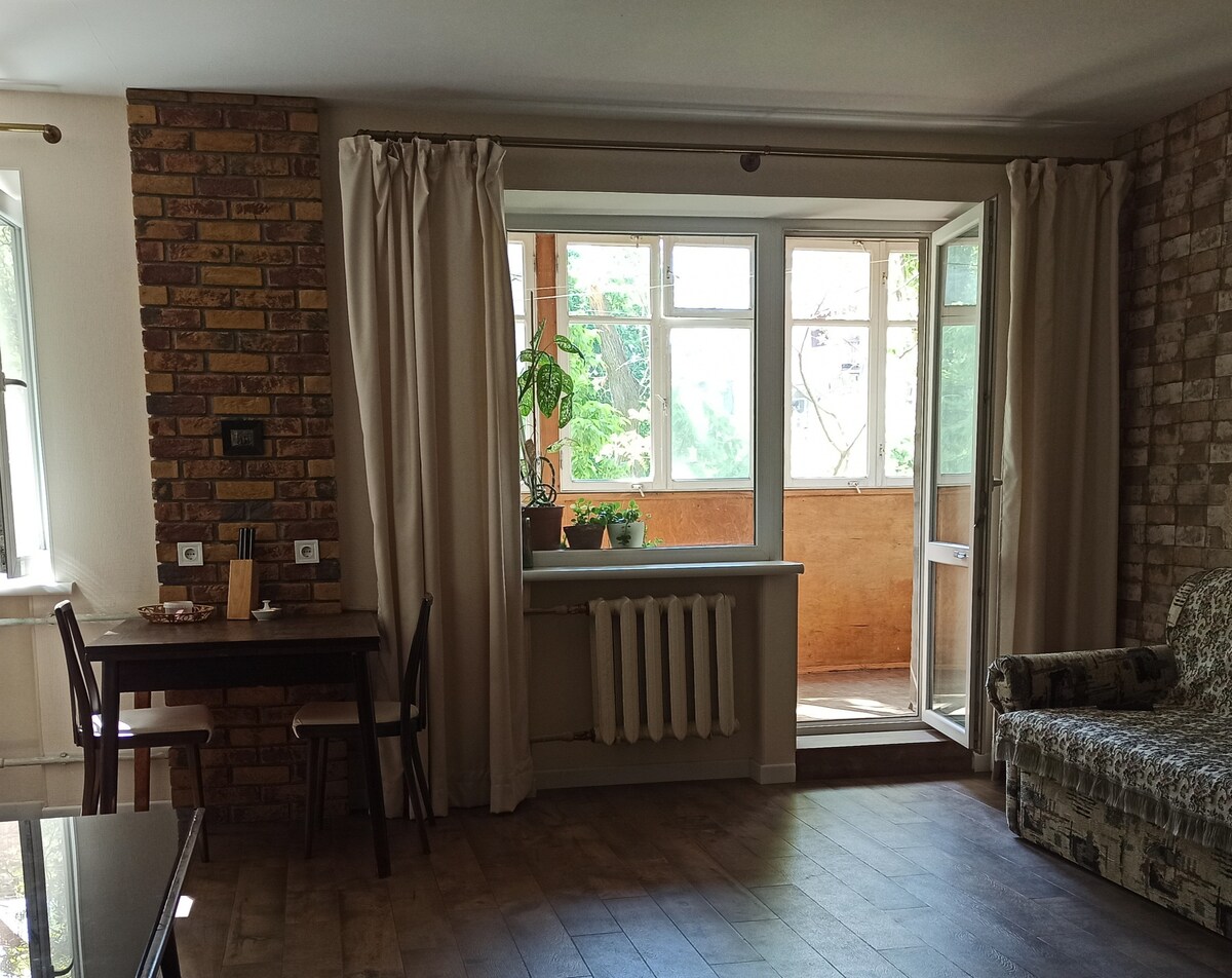 A stylish apartment in the center, designed in Scandinavian style with vintage furniture and modern art. It is located a 15-minute walk from the beach and 10 minutes from the central park, surrounded by many restaurants and bars. A pre-revolutionary building with a cozy Odessa courtyard. The apartment features a separate bedroom with a double bed and a comfortable sofa bed in the living room. The apartment is fully equipped with everything you need.