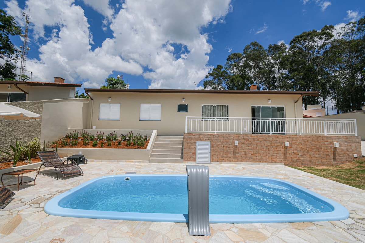 Apsistokite žavingiausiame Serra Negra namelyje 🏠 su SPA baseinu, grindų ugnimi, tinklais sode, pergolatu, vaikų žaidimų aikštele, plačia ir gerai kepta kepsninės zona ir gražiu sodu jums ir jūsų šeimai, kad galėtumėte pailsėti ir smagiai praleisti laiką su puikiu komfortu, vos už 5 minučių kelio nuo miesto centro 🥰