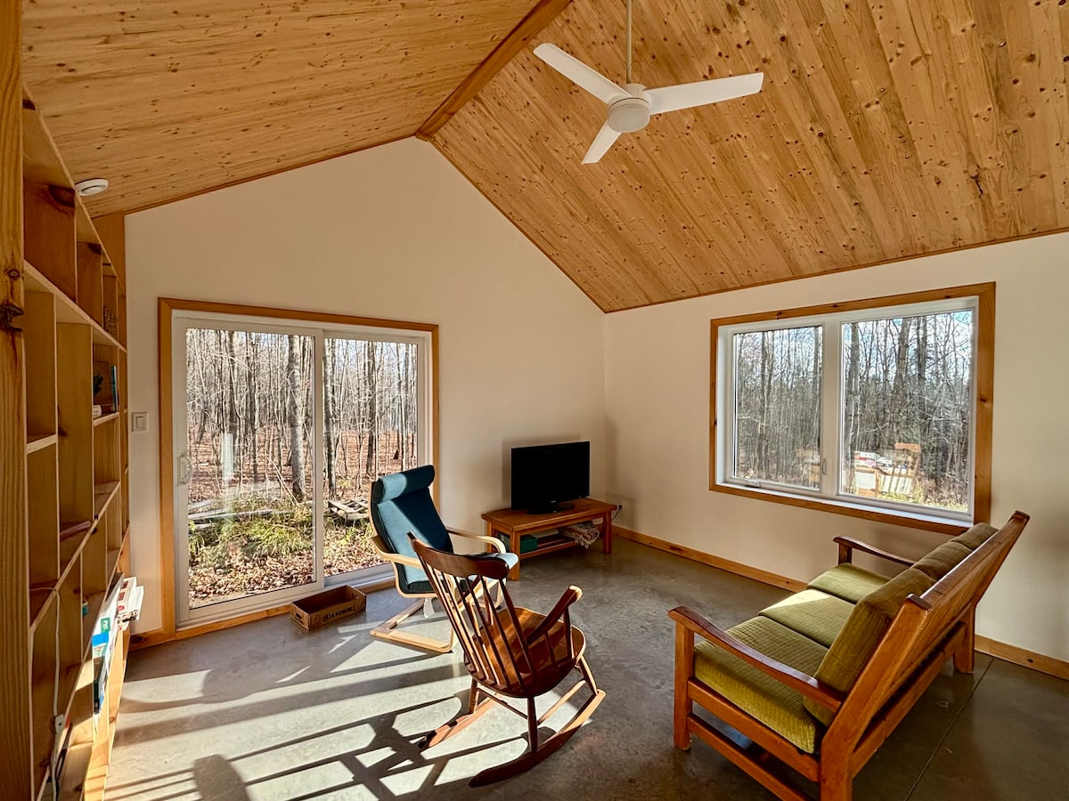 Chalet paisible et confortable pour se détendre en famille, entre amis ou pour télétravailler au calme (excellente connection internet). Emplacement et logement idéal pour toutes saisons, il y a de belles activités nature et découverte aux alentours et sur place. Le chalet est bien équipé pour les enfants et les bébés et nous acceptons aussi les animaux domestiques propres et bien élevés.