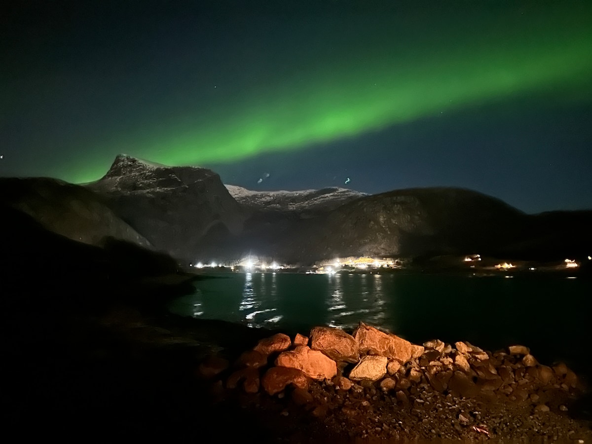 Ekra, šiek tiek senesnis namas, puikus ir gražus šiaurės pašvaistės žiemą