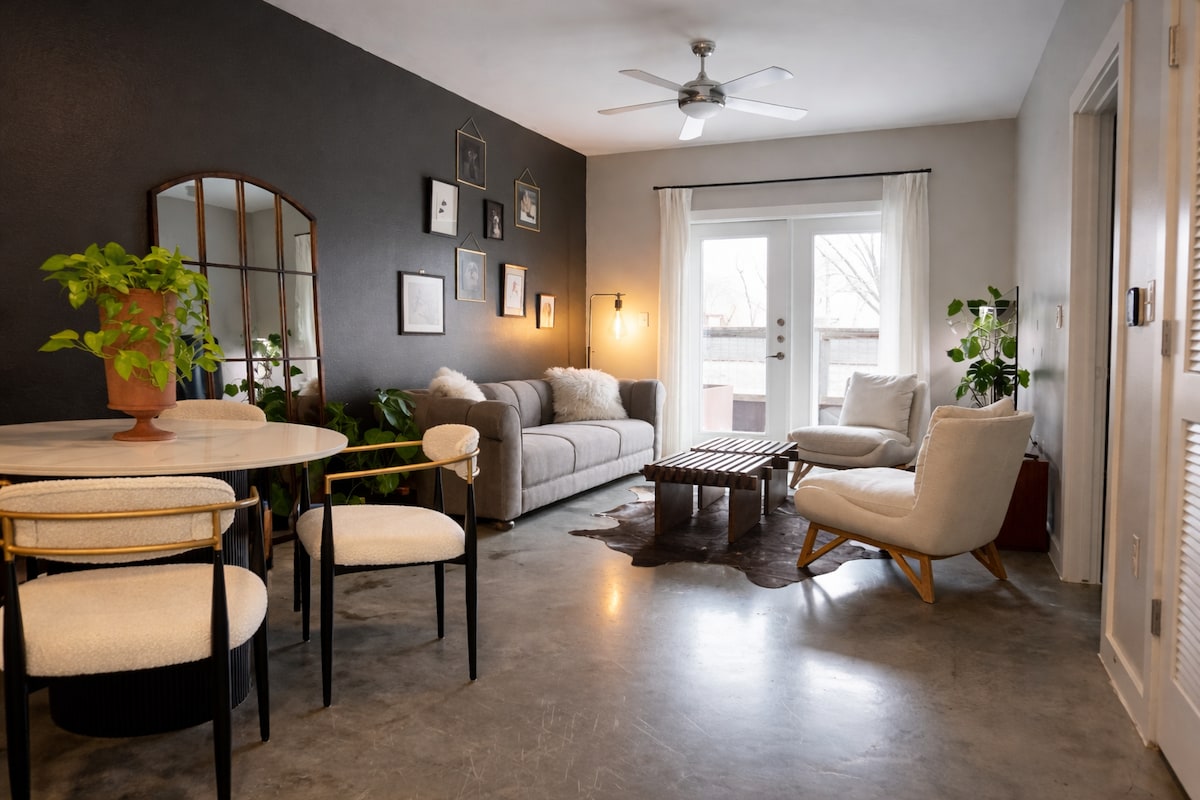 Welcome to your elevated Austin getaway! A space designed to help you relax the moment you arrive. Enjoy a beautifully curated living area, serene bedrooms made for a perfect nights rest, and a charming coffee bar for slow mornings. Warm textures and refined details create a cozy yet upscale atmosphere throughout. Tucked in a peaceful neighborhood with easy access to Downtown Austin, this home invites you to settle in and feel right at home.