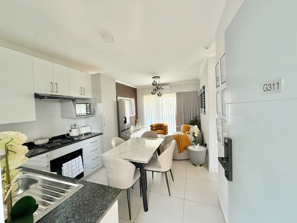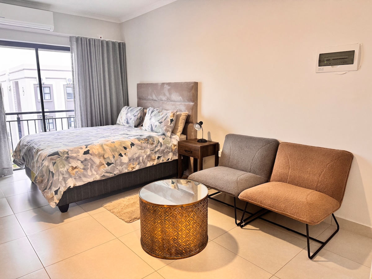 Modernus 1 miegamojo butas siūlo ramų poilsį pačioje Kgale View širdyje, įsikūrusiame ramiuose ir saugiuose Motswedi Place Apartments. Miegamajame įrengta aukštos kokybės poroloninė dvigulė lova, skalbyklė-džiovyklė, gražiai įrengta televizoriaus zona leidžia svečiams mėgautis kinematografine patirtimi su DStv (ribotais kanalais) ir Netflix. Svečiai taip pat gali naudotis nemokamu belaidžiu internetu, pilnai įrengta virtuve, oro kondicionieriumi ir visą parą veikiančia apsauga.
