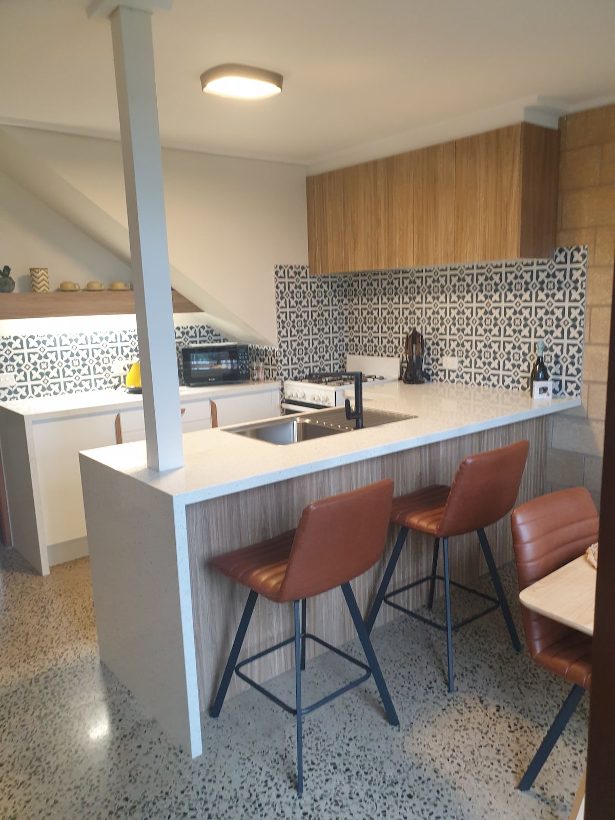 Vienaaukštis namas, esantis Belmonte, centriniame Geelong priemiestyje, yra atvira suplanuota erdvė, kurioje yra: virtuvėlė, suolas su baro kėdėmis, dvigulė lova ir spinta. Dizainas yra ryškus ir erdvus; baltos spalvos ir katedros lubos suteikia erdvumo pojūtį. Jis turi savo privatų sodą. Apgyvendinimas yra naujas esamo būsto papildymas. Jis turi gerą belaidį internetą, automobilių stovėjimo aikštelę už gatvės ribų ir yra netoli restoranų, parduotuvių, skalbyklos, pašto ir bibliotekos.