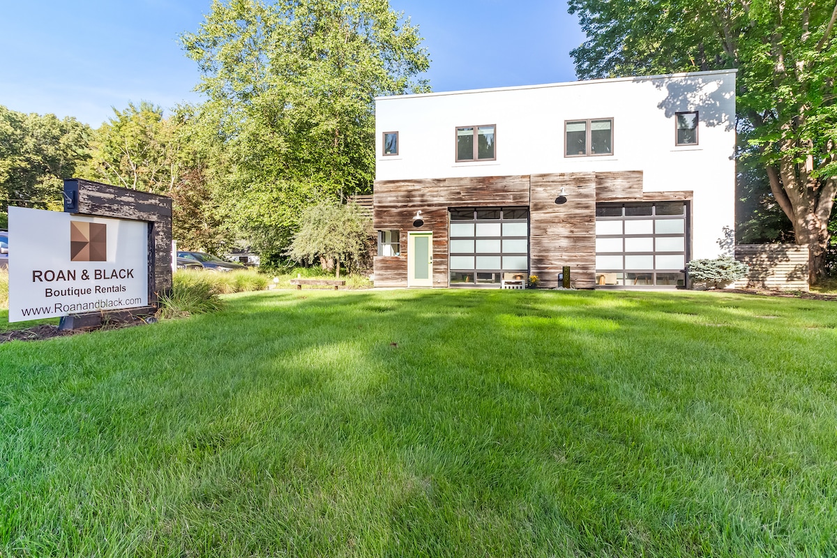 Sumptuous 4 BR/2.5 BA vacation home, just 1 block from Lake Michigan. Fully refurbished with reclaimed flooring, antique beams, custom doors, and fixtures. High-end kitchen, dining, and living areas with French windows. Living room features a stone fireplace, stylish couches, and a wide-screen TV. Three ground-floor bedrooms and baths with a second-floor bunk bed loft. Detached garage is a posh game room with high-end tables and a big TV. Covered patio, 4-seat dining, and bluestone courtyard. This property has been selected for inclusion in The 100 Collection, a global designation awarded to only the top professionally managed vacation rentals based on consistent quality and service. Classy, awe-inspiring, and sumptuous, this 1928 4 BR/2.5 BA vacation home, located just a block from Lake Michigan in “Harbor Country,” was once a local retail gathering place. Recently refurbished into a stunning residential home, it includes gorgeous reclaimed flooring from antique beams, custom doors, light fixtures, and hardware, as well as top-of-the-line plumbing fixtures. The kitchen-dining room-living room area—a massive, superbly well-lit space—features entire walls of French windows, original glass-block, and a wide array of seating options for meals: 4 chic stools at the white marble island, 4 leather seats around a circular marble coffee table, and a 10-seat reclaimed wood dining table. The beautifully lit living room has a classic stone fireplace at its center, stylish (yet ultra-comfortable) couches and chairs, and a wide-screen TV. In addition to the three bedrooms and bathrooms on the ground floor, there’s a second-floor sleeping loft, perfect for kids with cute bunk beds and a real (mini) teepee. All bedrooms feature top-quality bedding and linens, ensuring a sound sleep and sweet dreams for you and your guests. Black Door Bungalow can sleep up to 10. MAIN FLOOR Primary Bedroom: 1 King bed Bedroom 2: 1 Queen bed Bedroom 3: 1 Queen bed UPSTAIRS FLOOR Bedroom 4: Full-over-full bunk bed that sleeps 4 Another “extra” is the detached garage, which has been turned into a posh game room, with high-end shuffleboard and foosball tables, a big-screen TV, and a sound system. The exterior—featuring a spacious covered patio with cozy rattan couch, chairs, and a 4-seat dining table, leading to a bluestone courtyard—has been extensively landscaped with lush plantings, trees, and professional lighting. The home also includes a high-end kitchen, EV charger, and laundry appliances. In addition to being an easy walk from a majestic, crystal-sand Lake Michigan beach—and a super-short drive to popular beaches like Pier Street Beach and Cherry Beach—you and your guests can also enjoy the many activities afforded by being near Warren Woods State Park, which offers all sorts of woodland hiking and biking trails. The region’s largest recreational harbor provides countless water-related excursions and rentals, from fishing trips to boat, kayak, jet-ski, and paddleboard rentals, as well as day and evening cruises. There’s also the Acorn Theater, a local treasure for live performances by nationally recognized music artists, and a number of nearby breweries, wineries, brew pubs, and even an award-winning distillery for you to check out. Of course, you and your guests can also enjoy sampling to your heart's content the many popular restaurants, cafes, art galleries, boutiques, and antique shops just a hop, skip, and a jump away in Union Pier and downtown New Buffalo.