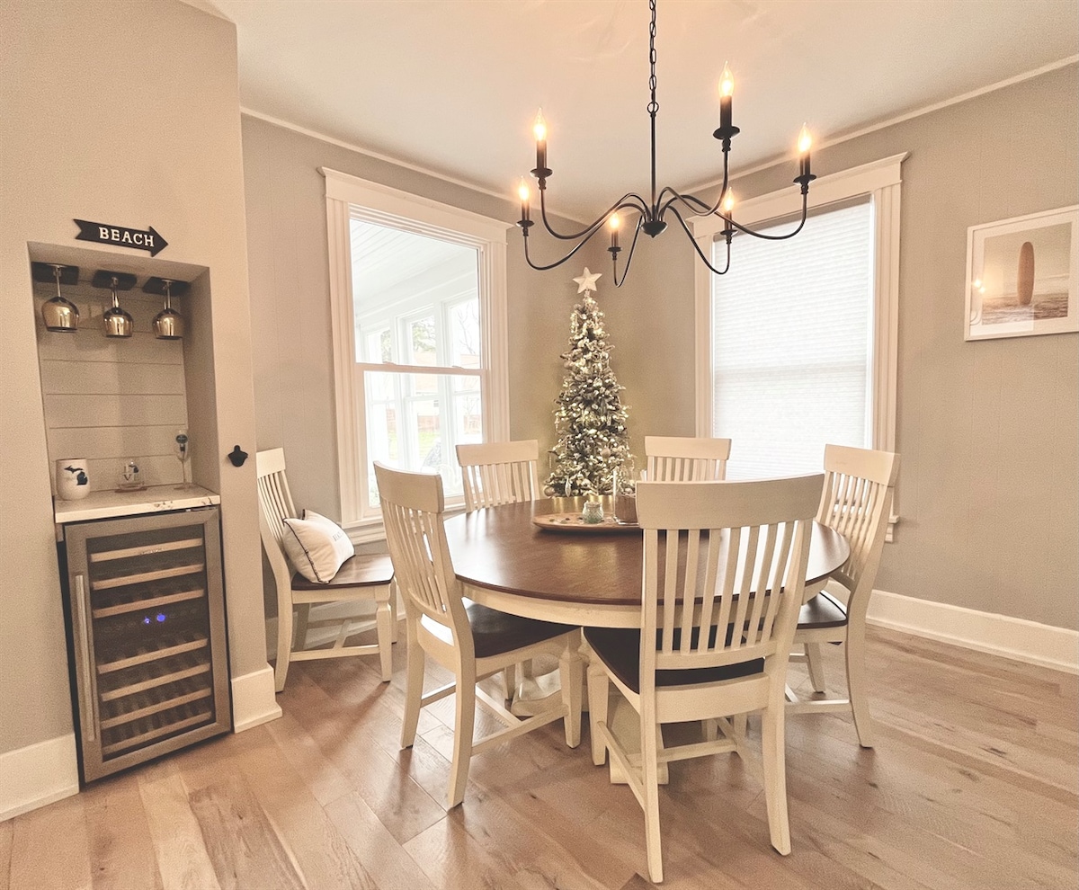 Sumptuous 4 BR/2.5 BA vacation home, just 1 block from Lake Michigan. Fully refurbished with reclaimed flooring, antique beams, custom doors, and fixtures. High-end kitchen, dining, and living areas with French windows. Living room features a stone fireplace, stylish couches, and a wide-screen TV. Three ground-floor bedrooms and baths with a second-floor bunk bed loft. Detached garage is a posh game room with high-end tables and a big TV. Covered patio, 4-seat dining, and bluestone courtyard. This property has been selected for inclusion in The 100 Collection, a global designation awarded to only the top professionally managed vacation rentals based on consistent quality and service. Classy, awe-inspiring, and sumptuous, this 1928 4 BR/2.5 BA vacation home, located just a block from Lake Michigan in “Harbor Country,” was once a local retail gathering place. Recently refurbished into a stunning residential home, it includes gorgeous reclaimed flooring from antique beams, custom doors, light fixtures, and hardware, as well as top-of-the-line plumbing fixtures. The kitchen-dining room-living room area—a massive, superbly well-lit space—features entire walls of French windows, original glass-block, and a wide array of seating options for meals: 4 chic stools at the white marble island, 4 leather seats around a circular marble coffee table, and a 10-seat reclaimed wood dining table. The beautifully lit living room has a classic stone fireplace at its center, stylish (yet ultra-comfortable) couches and chairs, and a wide-screen TV. In addition to the three bedrooms and bathrooms on the ground floor, there’s a second-floor sleeping loft, perfect for kids with cute bunk beds and a real (mini) teepee. All bedrooms feature top-quality bedding and linens, ensuring a sound sleep and sweet dreams for you and your guests. Black Door Bungalow can sleep up to 10. MAIN FLOOR Primary Bedroom: 1 King bed Bedroom 2: 1 Queen bed Bedroom 3: 1 Queen bed UPSTAIRS FLOOR Bedroom 4: Full-over-full bunk bed that sleeps 4 Another “extra” is the detached garage, which has been turned into a posh game room, with high-end shuffleboard and foosball tables, a big-screen TV, and a sound system. The exterior—featuring a spacious covered patio with cozy rattan couch, chairs, and a 4-seat dining table, leading to a bluestone courtyard—has been extensively landscaped with lush plantings, trees, and professional lighting. The home also includes a high-end kitchen, EV charger, and laundry appliances. In addition to being an easy walk from a majestic, crystal-sand Lake Michigan beach—and a super-short drive to popular beaches like Pier Street Beach and Cherry Beach—you and your guests can also enjoy the many activities afforded by being near Warren Woods State Park, which offers all sorts of woodland hiking and biking trails. The region’s largest recreational harbor provides countless water-related excursions and rentals, from fishing trips to boat, kayak, jet-ski, and paddleboard rentals, as well as day and evening cruises. There’s also the Acorn Theater, a local treasure for live performances by nationally recognized music artists, and a number of nearby breweries, wineries, brew pubs, and even an award-winning distillery for you to check out. Of course, you and your guests can also enjoy sampling to your heart's content the many popular restaurants, cafes, art galleries, boutiques, and antique shops just a hop, skip, and a jump away in Union Pier and downtown New Buffalo.