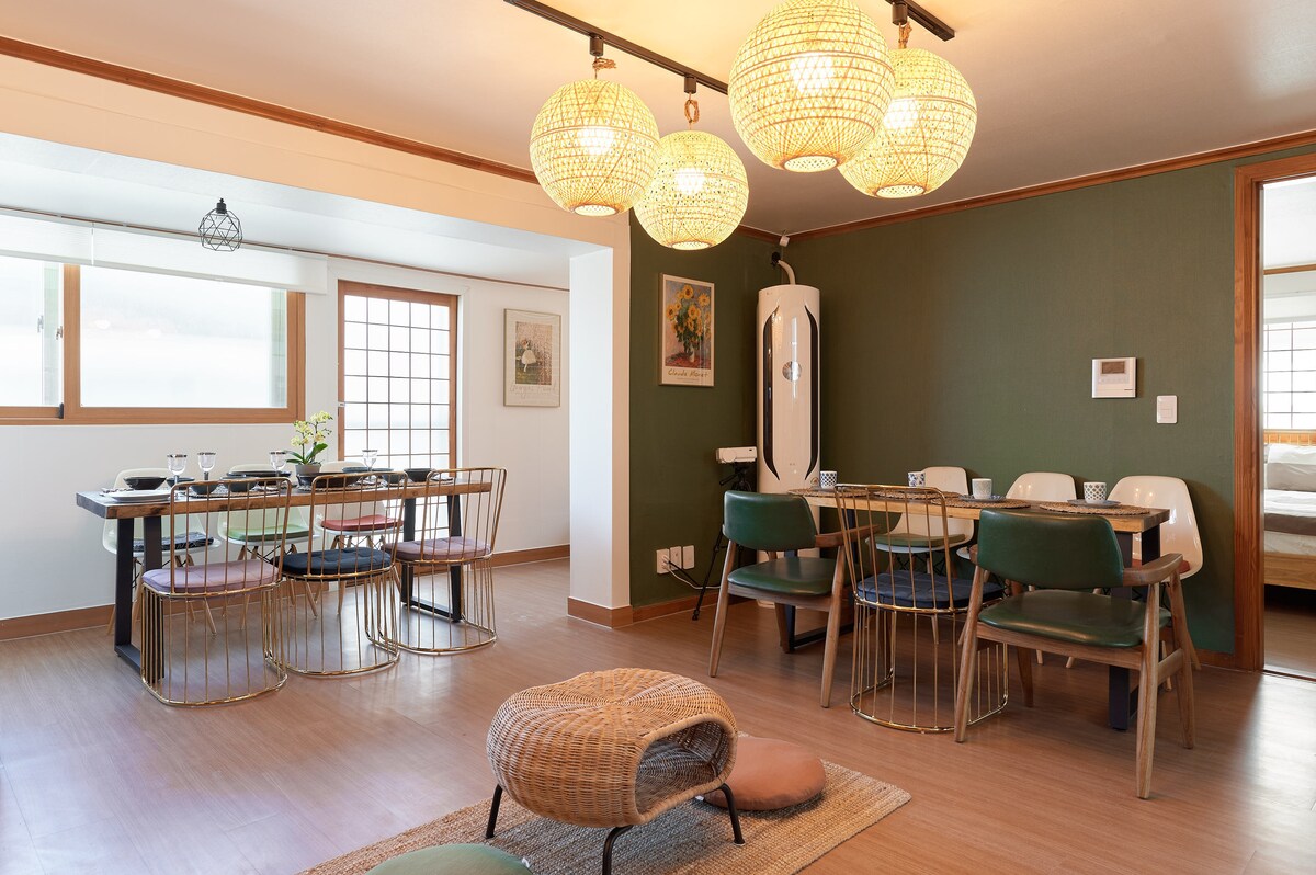 *Hanok stiliaus privatus namas Hongdae rajone. 5 min. kelio nuo Hongik Stn* * Jokių kalvų ar laiptų į namus — idealiai tinka šeimoms, senjorams ar kūdikiams.* ■4 miegamieji, miega iki 8 svečių - 3 dvigulės lovos - 1 Super viengulė lova - 1 papildomas grindų čiužinys - 2 modernūs vonios kambariai ■Kodėl jums tai patiks 1. Neseniai renovuotas su aukščiausios kokybės apdaila ir gražaus dizaino vonios kambariais su porceliano plytelėmis 2. Stilingas Hanok įkvėptas interjeras su aukštomis lubomis ir natūralaus medžio baldais