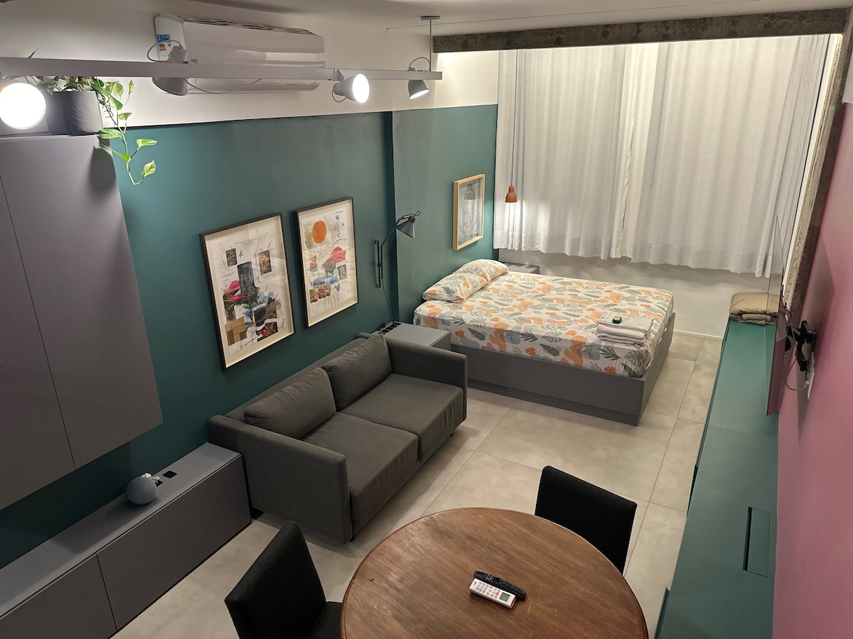 Moderni studija, dekoruota ir pilnai įrengta, geriausiame Ipanemos taške – vos už dviejų kvartalų nuo paplūdimio. Pastatas su liftu ir konsjeržu 24 val., saugus ir gerai įsikūręs, netoli restoranų, metro, kavinių ir visų vietinių įmonių. Mėgaukitės tikru carioca gyvenimu: pusryčiais už kampo, nardymu prieš darbą ar turistų vieta ir nepamirštamu saulėlydžiu Arpoadore. ✨ Jei turite klausimų, atsiųskite užklausą, kitaip užsisakykite dabar ir pasijuskite tikru carioca!