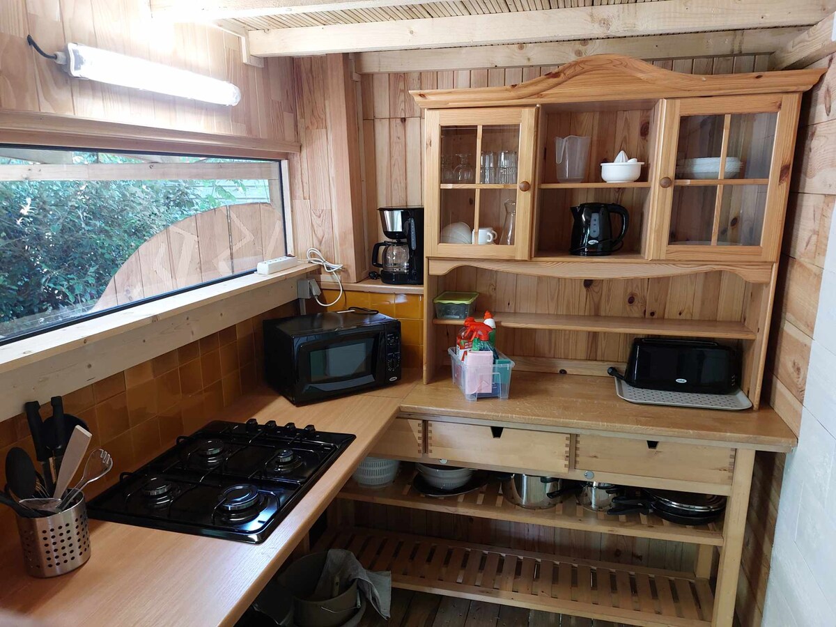 Įsikūręs miškingoje aplinkoje, miško pakraštyje, už 5 minučių kelio nuo Parentis ežero ir Born ežero, už 20 minučių kelio nuo biscarrosse paplūdimio ir ežero... mūsų originalus ir pertvarkytas priekabinis priekabinis namelis atveria rankas netipiškoms ir zen akimirkoms. Romantiškam savaitgaliui arba Zen poilsiui. Automobiliniame namelyje yra didelė dvigule lova, šaldytuvą, lauko kepsninę, kavos aparatą ir virdulį. Dušo kambarys su sausais tualetais yra vos už kelių metrų nuo priekabos.