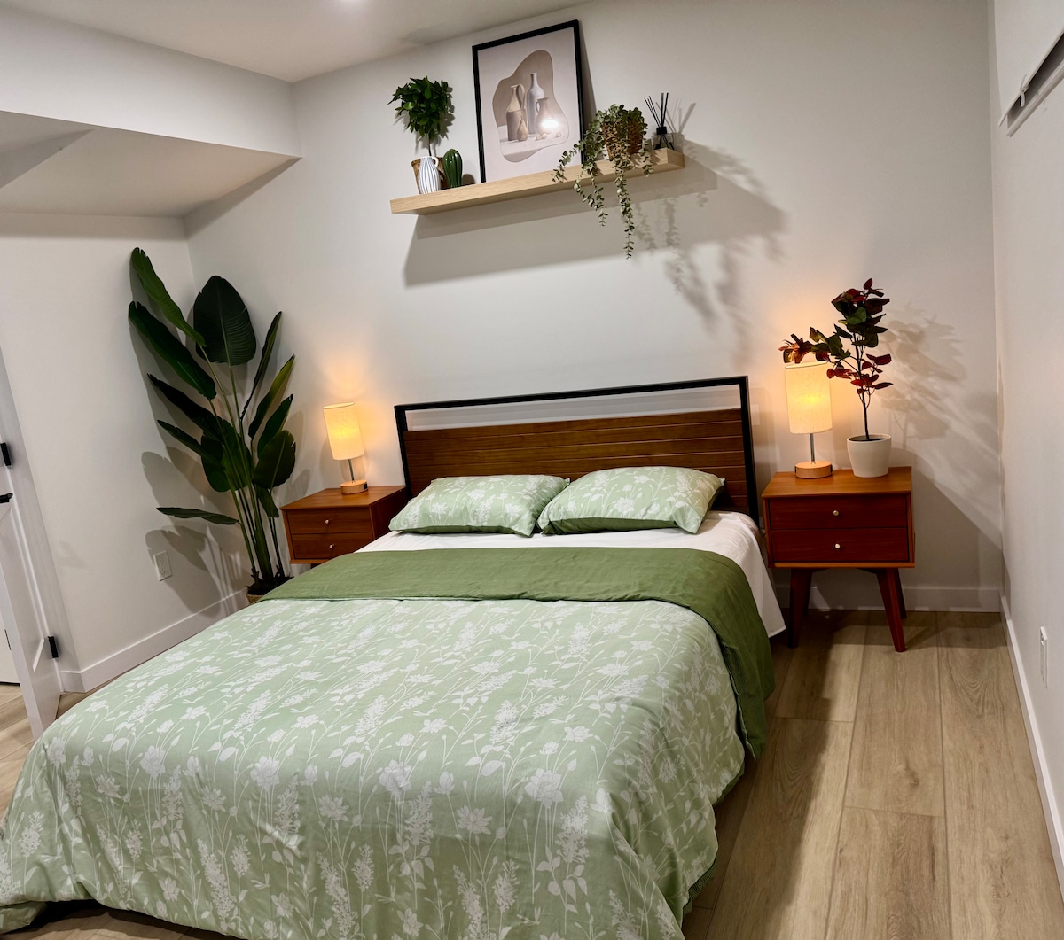 Jaukus papėdis yra ramus ir patogus 2 miegamųjų namas netoli miesto centro Naujiena 2023 m.: oro kondicionierius! Namuose yra daug natūralios šviesos, židinys, erdvūs miegamieji ir pilnai įrengta virtuvė. Abiejuose miegamuosiuose yra patogi karališka lova, vonios kambarys, juodos žaliuzės, spinta ir televizorius. NEMOKAMA automobilio stovėjimo aikštelė gatvėje. Nuostabi vieta! Netoli miesto centro, Rodžerso centro, Sandraugos stadiono, Karališkosios Aleksandros ligoninės ir NAIT Nėra per didelio triukšmo, nes rūsyje yra nuomininkų
