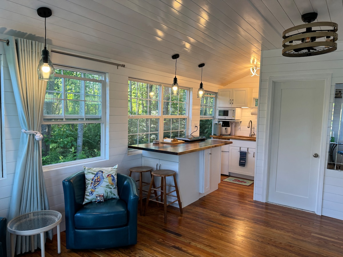 Atsipalaiduokite šioje stilingoje, jaukioje ir šviesioje dvigulės lovos studijos tipo trobelėje. „The Cabins at Currier Landing“, esančios „Dwell“ kaip „Trys stebuklingos mikronamos„ Take Root in a Maine Forest “, yra Thos. Currier Saltwater Farm. Glimpses of water and access to 300’ of our shore on the Benjamin River Harbor. 2 sezoninės trobelės. 1 metų studijos tipo trobelė. Įsikūręs Mėlynosios kalvos pusiasalyje, netoli Deer salos, trobelėse yra galimybė užsiimti veikla lauke, kultūriniais renginiais, restoranais ir parduotuvėmis.