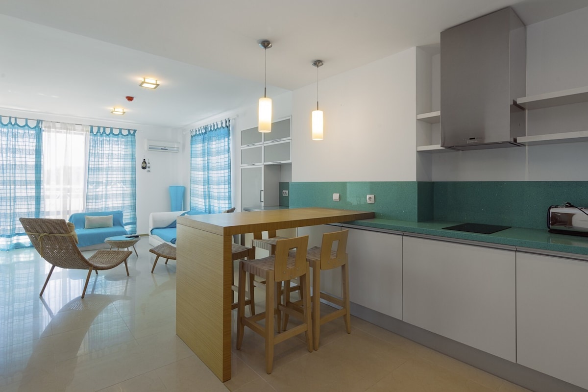 Saulėto paplūdimio vieno miegamojo butas