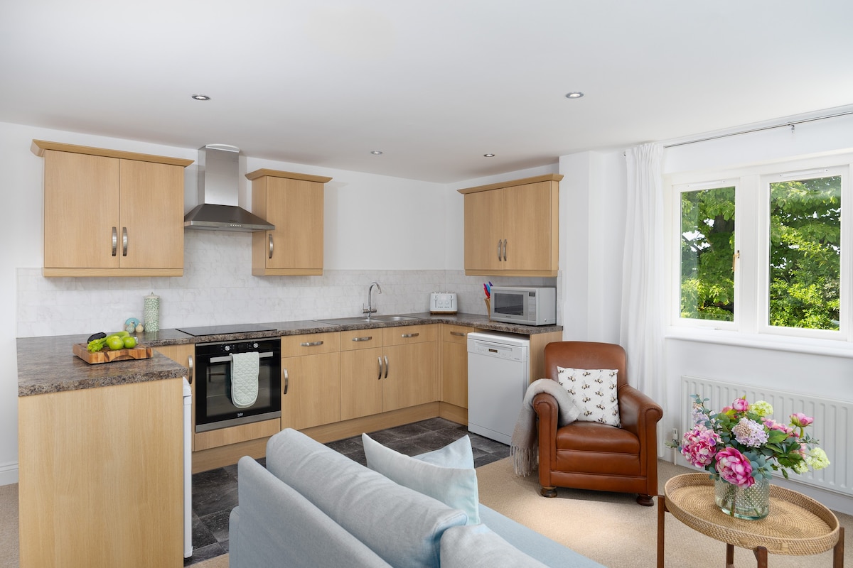 Erdvus autonominis butas Wykeham House teritorijoje netoli Spaldingo. Pirmame aukšte įėjimas su WC, šaldikliu, skalbimo mašina ir daiktų laikymo vieta, laiptais į pirmą aukštą su dideliu vonios kambariu su dušu, miegamuoju su karališko dydžio lova, sienomis ir rašomuoju stalu. Atviro plano virtuvė/svetainė/valgomasis su visais modo trūkumais, patogiomis sėdimomis vietomis, valgomuoju stalu, dideliu išmaniuoju televizoriumi ir vaizdu į sodą ir upės krantą, esantį šalia namo. Privati valgomoji zona lauke, taip pat prieiga prie 2,5 akrų sodo.