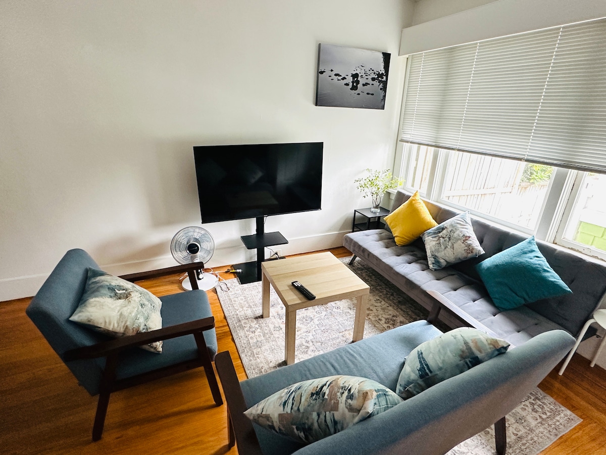 Šis butas yra už kvartalo nuo populiariausio miesto paplūdimio, netoli restoranų, parduotuvių, kavos ir ekologiškų maisto prekių parduotuvių. 10 minučių autobusas per tiltą į miesto centrą. Saugus pastatas su požemine automobilių stovėjimo aikštele. Jis įsikūręs ramiame rajone tiesiai ant dviračių tako. Visas butas yra jūsų su privačia veranda, skalbykle, rankšluosčiais/patalyne su pilnai įrengta virtuve. Geras Wi-Fi ir televizija su Roku, Netflix ir Apple TV.