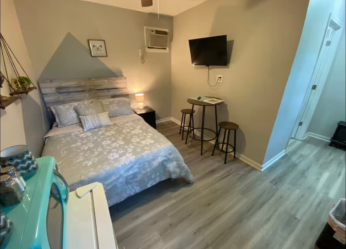 Ši neseniai renovuota atskira studija yra „namelio medyje“ stiliaus namai, o tai reiškia, kad jie yra pakelti nuo žemės, apsupti medžių ir suteikia namelio medyje pojūtį! [*Pastaba: vienas medis neseniai buvo prarastas uraganui Florencijoje, bet aplink namus yra daug daugiau.] Mėgaukitės nerūdijančiojo plieno prietaisais, šviežia pilka ir balta spalvų schema, taip pat nemokamu Wi-Fi, „Netflix“ ir kava. Visame name yra šviestuvas, todėl jis jaukus ir svetingas bet kuriam svečiui.