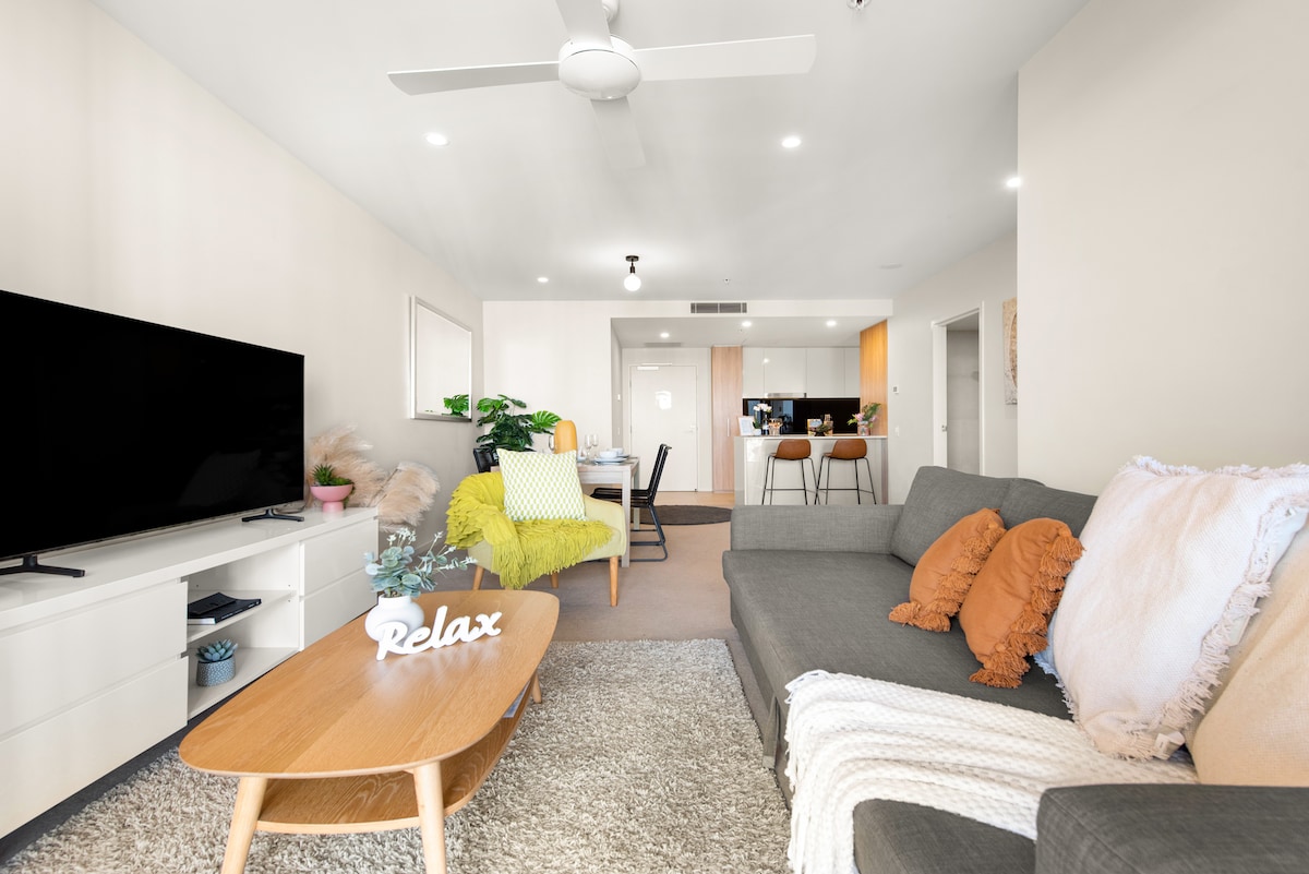 Apsistokite pačioje miesto širdyje šiame stilingame, moderniame bute, esančiame netoli vaizdingo upės pėsčiųjų tako ir ikoniško Istorijos tilto. Vos už kelių minučių pėsčiomis nuo prekybos centro „Queen Street Mall“, gyvybingo slėnio ir centrinės traukinių stoties galėsite lengvai pasiekti visas geriausias miesto lankytinas vietas. Autobusų stotelė yra patogioje vietoje po butu, todėl lengva keliauti. Bute yra erdvus išplanavimas, modernūs baldai ir atpalaiduojanti atmosfera, idealiai tinkanti tiek darbui, tiek laisvalaikiui.