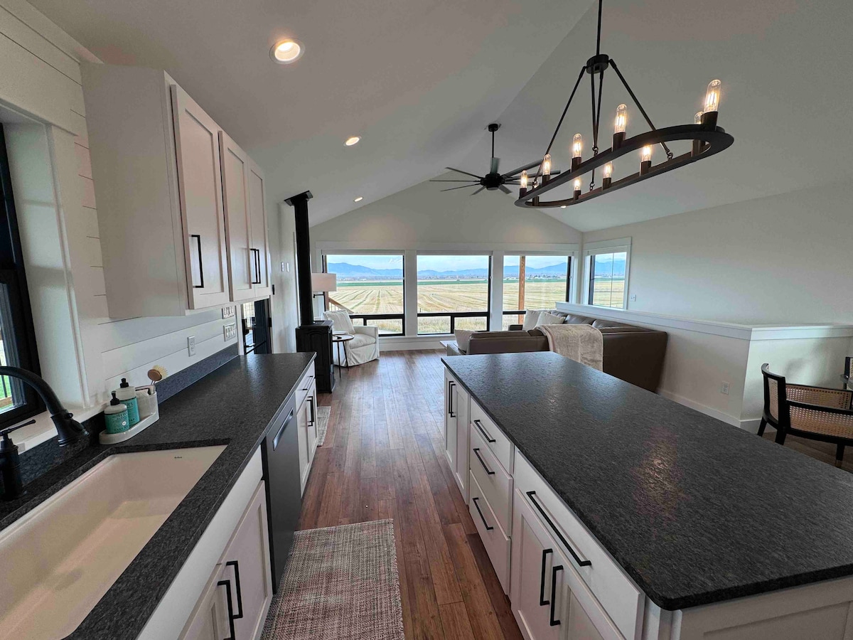 Newly constructed, 675 sq ft Sunrise Silo sleeps 4, with a queen bed in the loft and a main floor pull-out sleeper sofa. Sunrise Silo is a unique example of how rustic charm pairs perfectly with modern amenities and an indulgent experience. The stunning, unobstructed views of the Bridger Mountains and surrounding Gallatin Valley will ensure this becomes your favorite Montana vacation destination. Enjoy a rural setting while having easy access to adventure and entertainment opportunities.