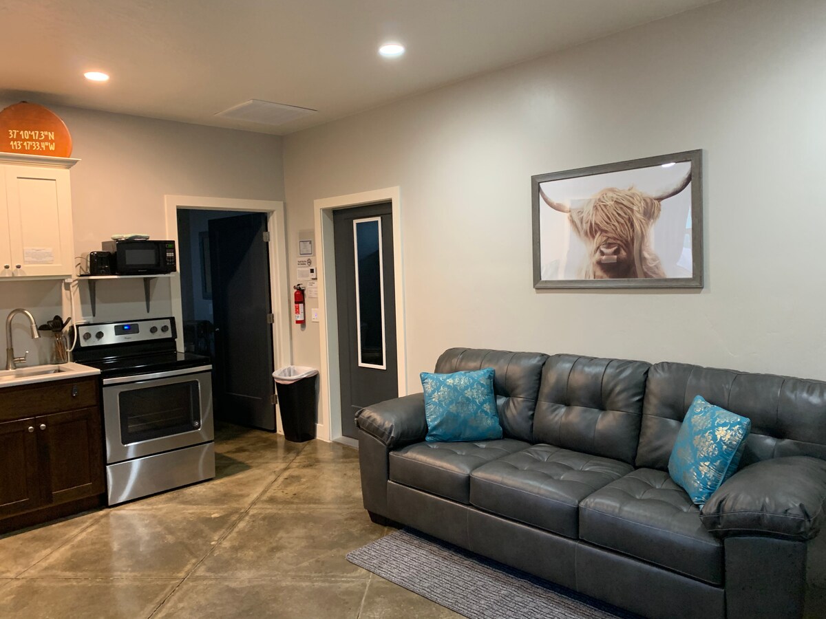 Laimingas, švarus, patogus, didelis liukso numeris su KARALIŠKO dydžio lova, mini virtuvės zona. Labai gražus, saugus rajonas. Esame draugiški ir bendraujame tiek, kiek tik norite. Mums lengva keliauti, gyvename čia, būste, ir galime jums padėti bei atsakyti į klausimus. Netoli Ziono nacionalinio parko (25 minutės) 2 val. iki Bryce nacionalinio parko ir Powell ežero. Esame už kelių minučių kelio nuo puikių smėlio kopų, putpelių ežero ir smėlio tuščiavidurio rezervuaro, JEM tako, „Gooseberry Mesa“, šalia „Three Falls Canyon“.