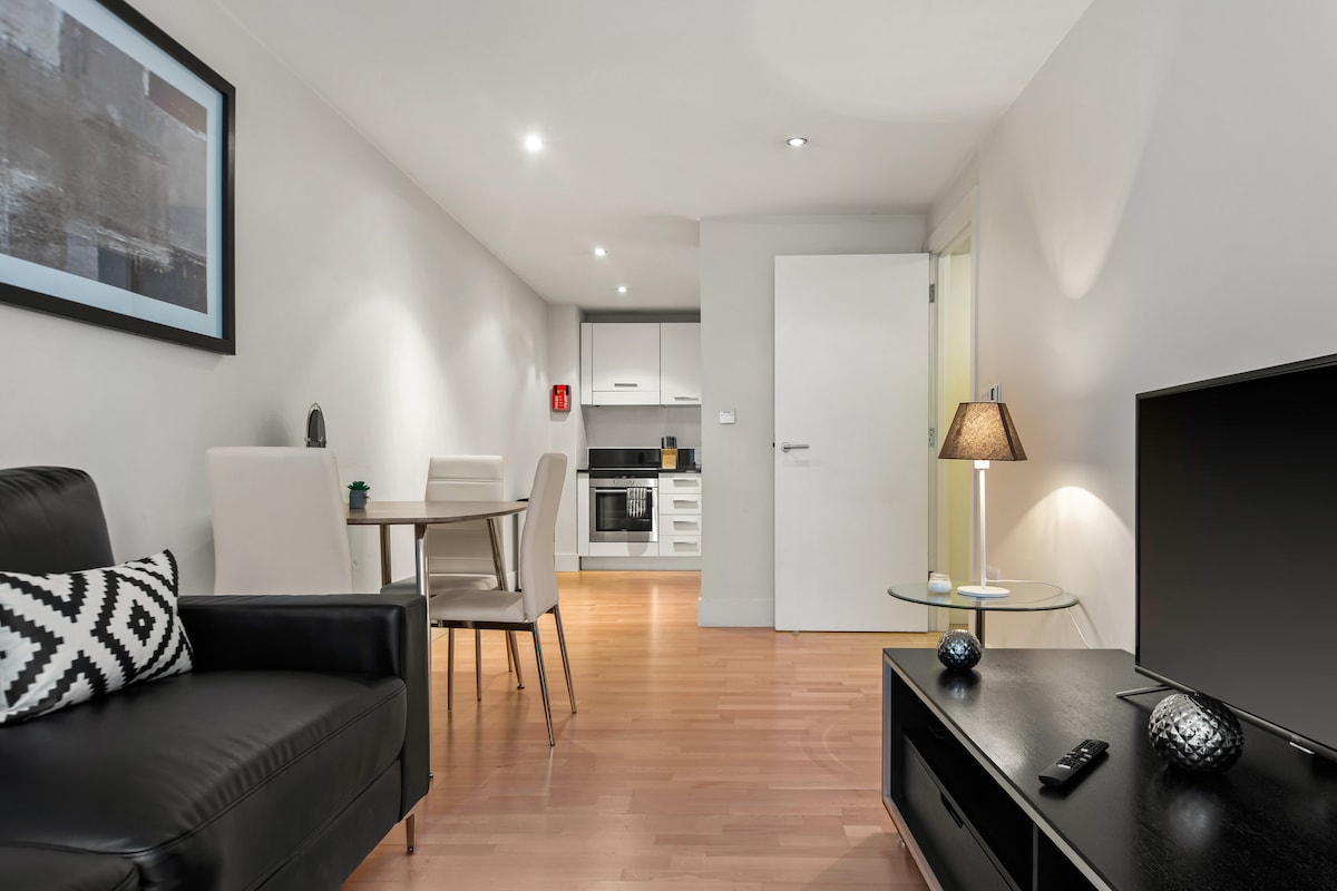 Just seconds away from Canon Street and Bank stations, this stylish City of London apartment is situated in an ideal central location. Perfect for business trips and city breaks, the property has a fully equipped kitchen and a well-proportioned living/dining area with a comfortable sofa bed. All are easily accessible on the first floor. The bedroom has a modern UK king-size bed, and there is a spacious bathroom with a bath, ideal for relaxing after a busy day in the city.
