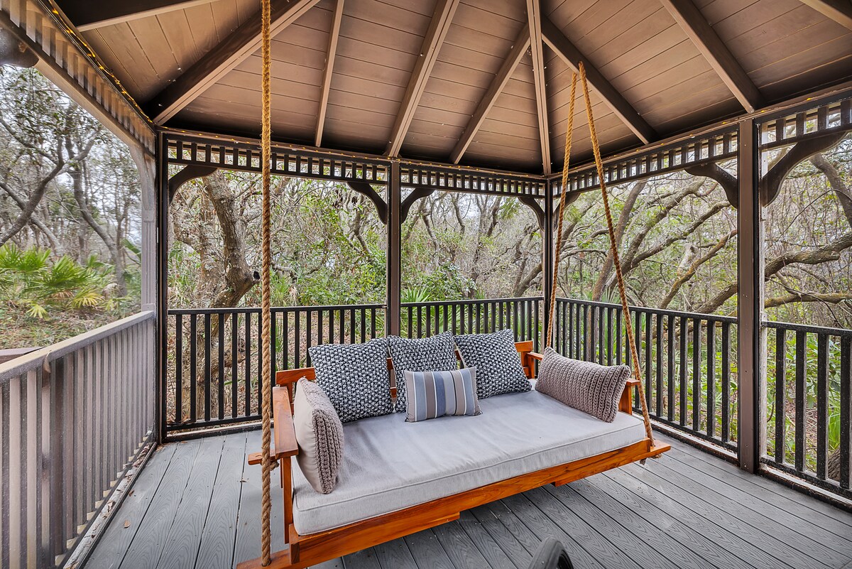 Atsipalaiduokite ir atnaujinkite ryšį šiuose stilinguose moderniuose namuose su daugybe erdvių, kurias galėsite išsiplėsti jūs ir jūsų svečiai. Įsiklausykite į įrašą, užpilkite alaus už tiki baro arba žiūrėkite filmą lauke prie laužavietės. Praleiskite savo dienas žygiuodami Cumberland saloje arba plaukiokite baidarėmis Šv. Marys upe, o tada grįžkite ir pasinerkite į patogias lovas! „Ar kada nors apsistojote kur nors, kur norėjote suplanuoti daugiau prastovų?„--Gabrielle S. Peržiūrėkite mus Insta gram: @dustyrosega