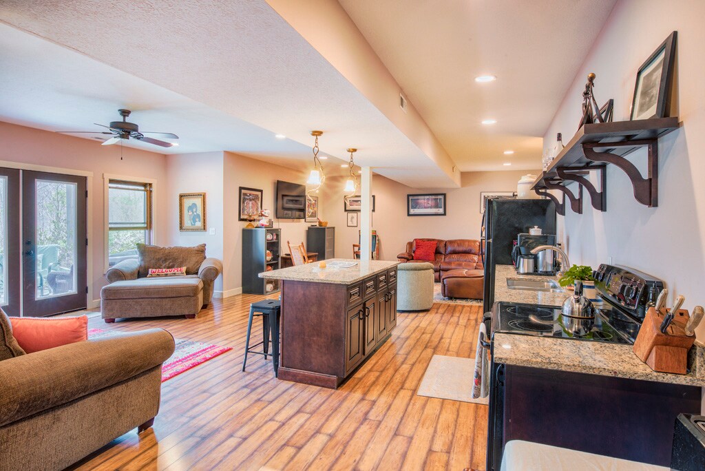 The one-bedroom apartment in the basement of our house can host up to 4 people and features a walkout with a hot tub and a porch swing. The apartment has a queen bed, pull out couch, kitchen, closet, bathroom, and desk. We live in rural, Appalachian Ohio on 20 acres. We have fields, woods and a pond for exploring. Our place is about 15 minutes from town; shopping, grocery and restaurants. We are 20-30 minutes from the Hocking Hills State Parks, canoeing, hiking, etc. Certificate #00218