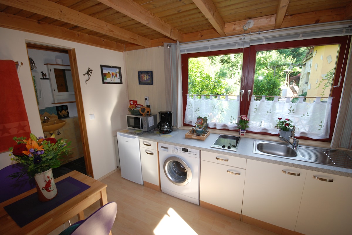Mūsų jaukus butas akmenyje, 3 km nuo Niurnbergas, įsikūręs gražaus sodo viduryje, miško takelyje/ gamtos rezervate. 2 terasose galite papusryčiauti esant geram orui arba atsipalaiduoti šalia Azijos sodo. Augintiniai yra paprašius ...visada laukiami, bet 15 eurų už kiekvieną gyvūną vieną kartą .... Dėl didesnių valymo pastangų...