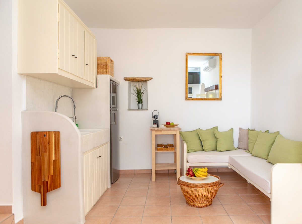 Pastatyta aplink Kikladų arkas, vadinamas Camares, beveik prie įėjimo į pilį, studija yra gerai žinomame rajone, kuriame dera tiek privatumas, tiek gyvybingas restoranų vyno barų ir visų rūšių parduotuvių gyvenimas. Studijoje yra karališko dydžio lova, sofa-lova dviems, virtuvėlė ir privatus vonios kambarys, taip pat privati terasa su vaizdu į jūrą ir judrias gatves. Šalia buto taip pat yra uostas, paplūdimys ir dvi viešosios automobilių stovėjimo aikštelės.