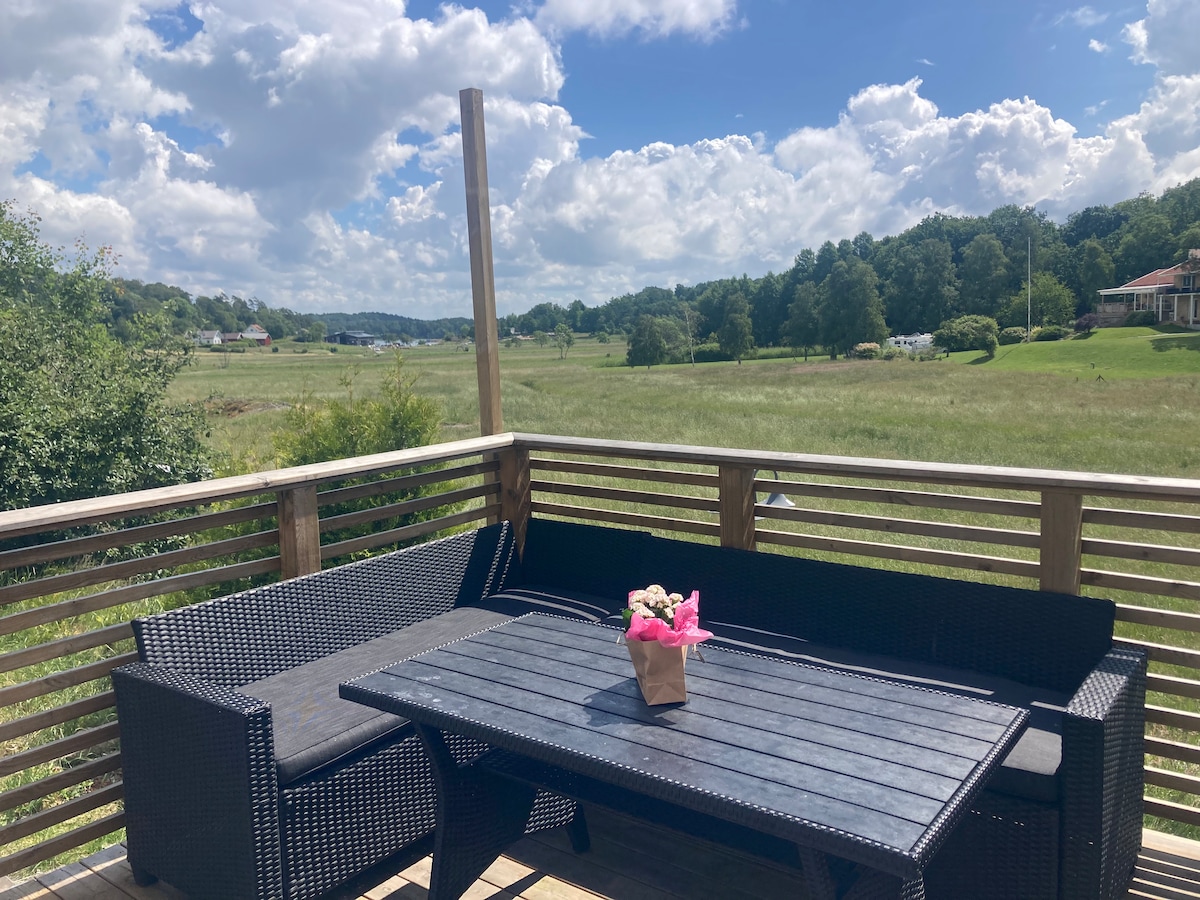 Nuostabus, šviežias kotedžas su vaizdu į jūrą ir rami vieta Stenungsön. Kotedžą sudaro svetainė su svetainės zona su modernia sofa-lova 2 asmenims (140 cm) Pridėtame priestate yra dvi viengulės lovos, kurias galima lengvai sujungti į dvigulę lovą Plaukimo prieplauka 100 metrų atstumu ir gražūs paplūdimiai 700-1000 metrų atstumu. Apylinkėse taip pat yra gražūs pėsčiųjų takai gražioje aplinkoje. Už 2,5 km yra Stenungs Torg su 65 parduotuvėmis ir visomis įmanomomis paslaugomis. Nemokama automobilių stovėjimo aikštelė sklypo ribose, TV, Wi-Fi Galima įkrauti elektrinį automobilį
