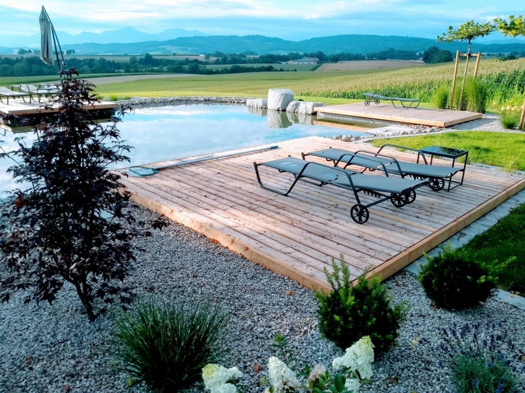 Stylish house with panoramic mountain views – perfect for nature lovers and those seeking peace and quiet. This accommodation is available for booking at certain times. Bookings are possible upon request. It features one bedroom, a modern kitchen, and a sauna. The garden includes a natural swimming pond and several terraces. Everything is on one level and wheelchair accessible. Adults only (14+), ideal for romantic getaways or relaxing holidays.