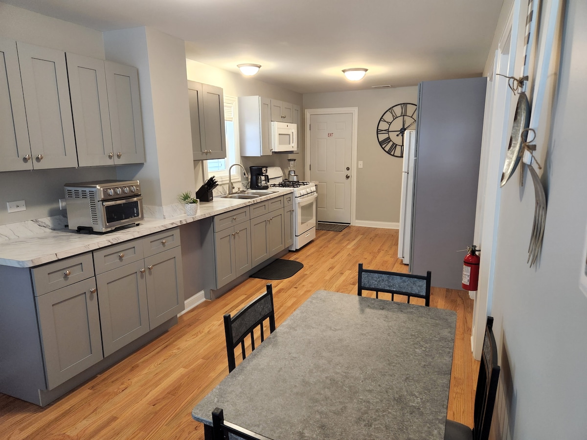 Šiek tiek atsitraukite į praeitį su mūsų žavingu antro aukšto pasivaikščiojimu ramiame, saugiame priemiestyje. Teritorijoje yra automobilio stovėjimo vieta. Vintažinė, svetinga atmosfera. Esame už 20-30 minučių kelio automobiliu iki Čikagos centro (priklausomai nuo eismo). Butas yra antrame aukšte ir yra atskirtas nuo likusio namo (gyvename pirmame aukšte). 1 Speciali svečių stovėjimo vieta (su ja). Yra papildoma nemokama stovėjimo aikštelė. Puikus Wi-Fi. 3 sezonų galinė veranda. Įrašų grotuvas (tikrasis vinilas!)