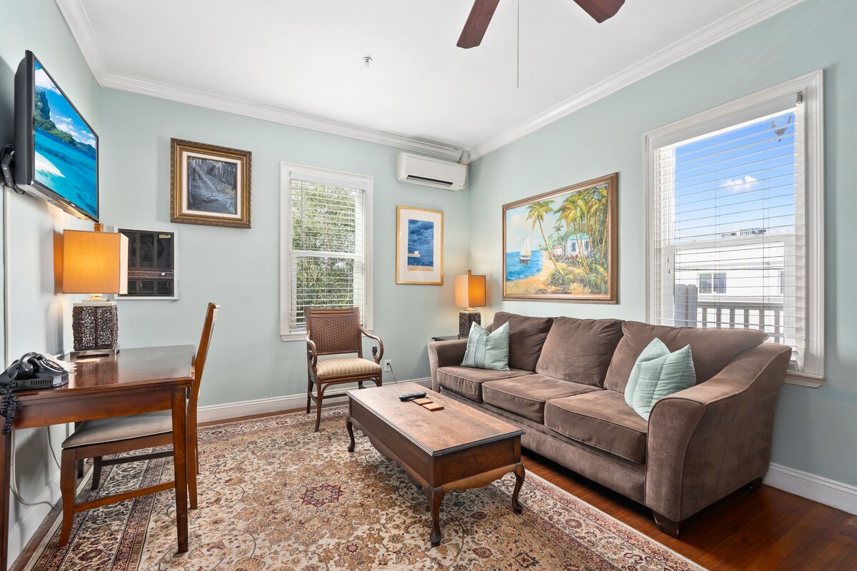 Užeiga yra Stiuarto centre. Pasivaikščiokite po pagrindinę juostą arba šiek tiek palaukite, kol praeis vežimėlis. Paplūdimys yra vos už 5 min. kelio ir keli parkai vos už kelių kvartalų! Kambariai yra privatūs, pilni šviesos ir gražaus, paprasto dekoro. Paklauskite mūsų apie vietinius renginius ir parodų laiką mūsų vietiniame šiuolaikiniame Lyric teatre arba savaitgaliui apsilankykite viename iš daugelio mūsų meno festivalių, mūsų koncertų po atviru dangumi Rock N' River Walk sekmadieniais ir sekmadienio žaliąjį turgų