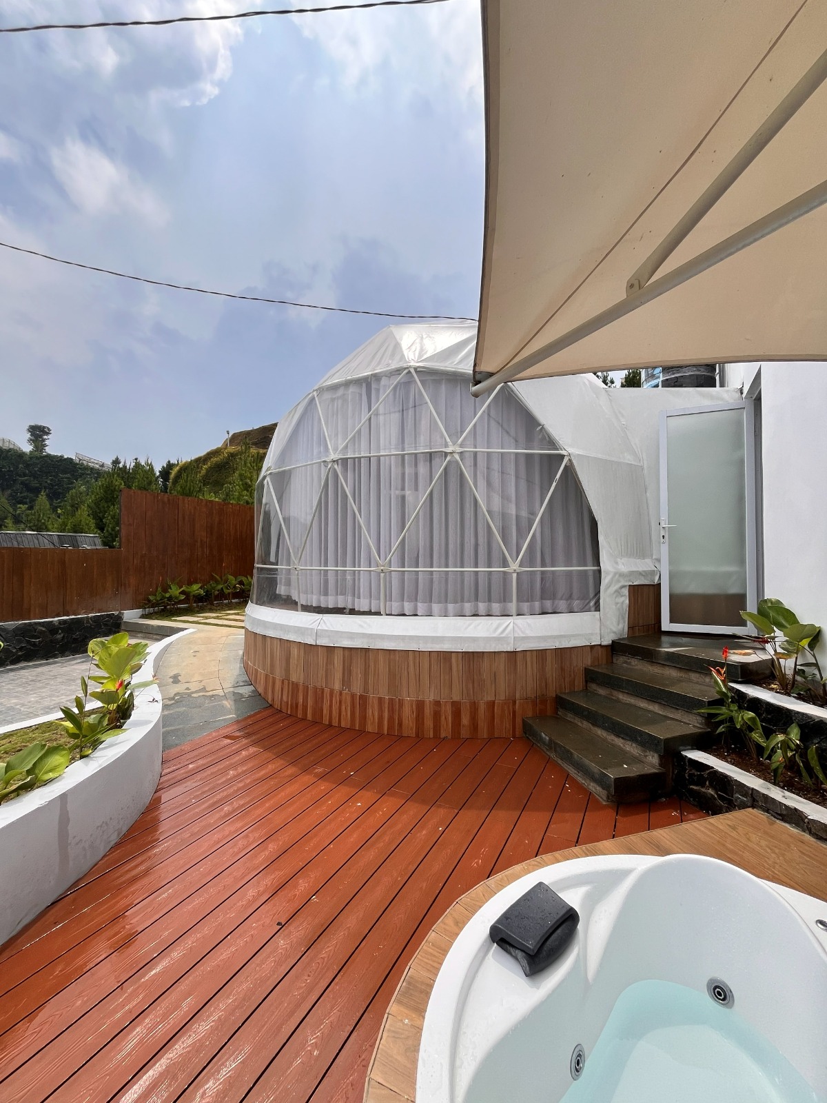 Temukan pemandangan memesona di sekeliling tempat menginap ini. Glamping oasis yang cocok untuk staycations bersama keluarga, pasangan, dan teman-teman sudah di fasilitasi aminities yang lengkap dengan jacuzzi air hangat langsung memghadap pemandangan, memiliki area api unggun dan gazebbo untuk bersantai