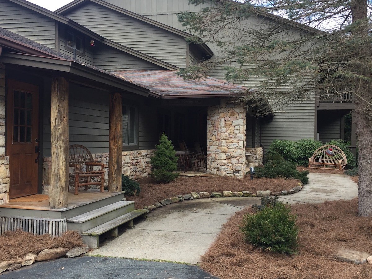 Ridgecrest Unikali kaimiško pučiančio uolos NC trobelė su nuostabiais tolimojo BlueRidge kalnų vaizdais į Pisgah nacionalinį mišką. Suprojektavo Lisa Harris Ši stilinga kalnų moderni trobelė yra prabangi, graži su dviem pagrindiniais miegamaisiais su pilnais vonios kambariais. Trobelė suprojektuota atkreipiant dėmesį į detales ir kuruojama, kad svečiai jaustųsi patogiai. Patirkite nuolat besikeičiančius įspūdingus vaizdus iš dviejų pusių. Jis įsikūręs tarp vešlių, žalių gamtos vaizdų netoli Pūtimo uolos kaimo.