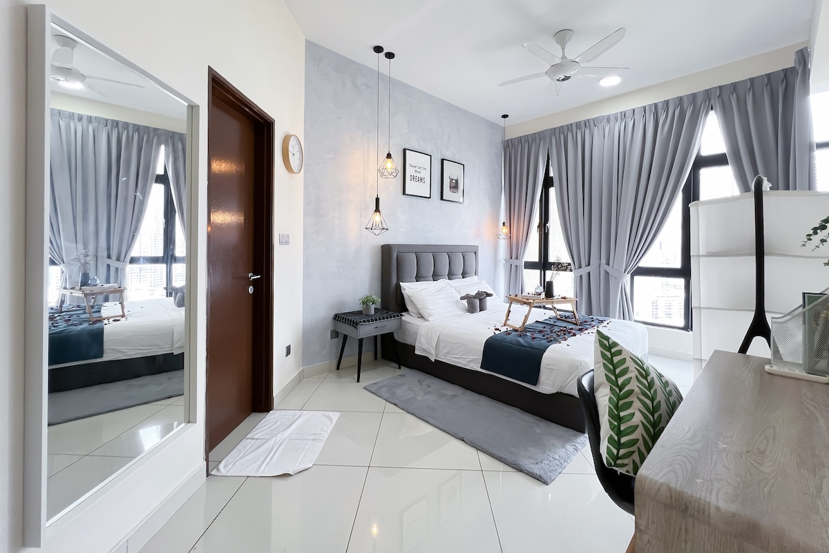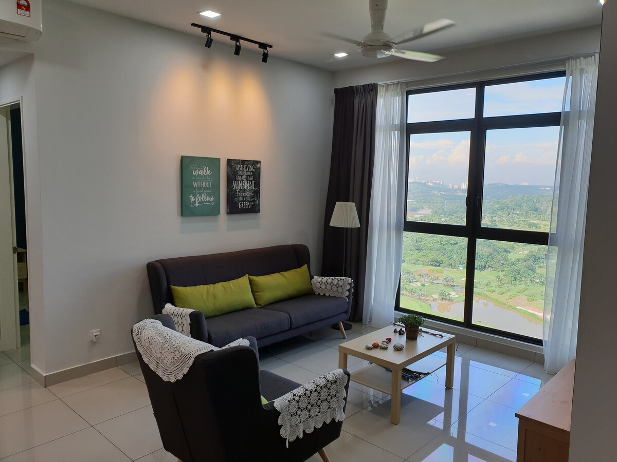 ** MAKS. 6 svečiai ** Sveiki atvykę į Alpine Homestay 1. Savarankiškas atvykimas ir išvykimas. 2. Internetas 200 Mbps. 3. Įspūdingas vaizdas į golfą. 4. Viršutinis aukštas. 5. Premium Netflix. 6. Išankstinio užsakymo oro uostas „Grab“ taksi. 7. Daug grindų kilimėlių ir rankšluosčių. 8. 2 rezervuotos automobilio stovėjimo aikštelės. 9. Įranga: tik baseinas ir sporto salė. Netoli: 1. IOI miesto prekybos centras (700 m) 2. Palm Garden golfo aikštynas 3. Serdango ligoninė 4. UPM 5. UNITEN 6. MAEPS