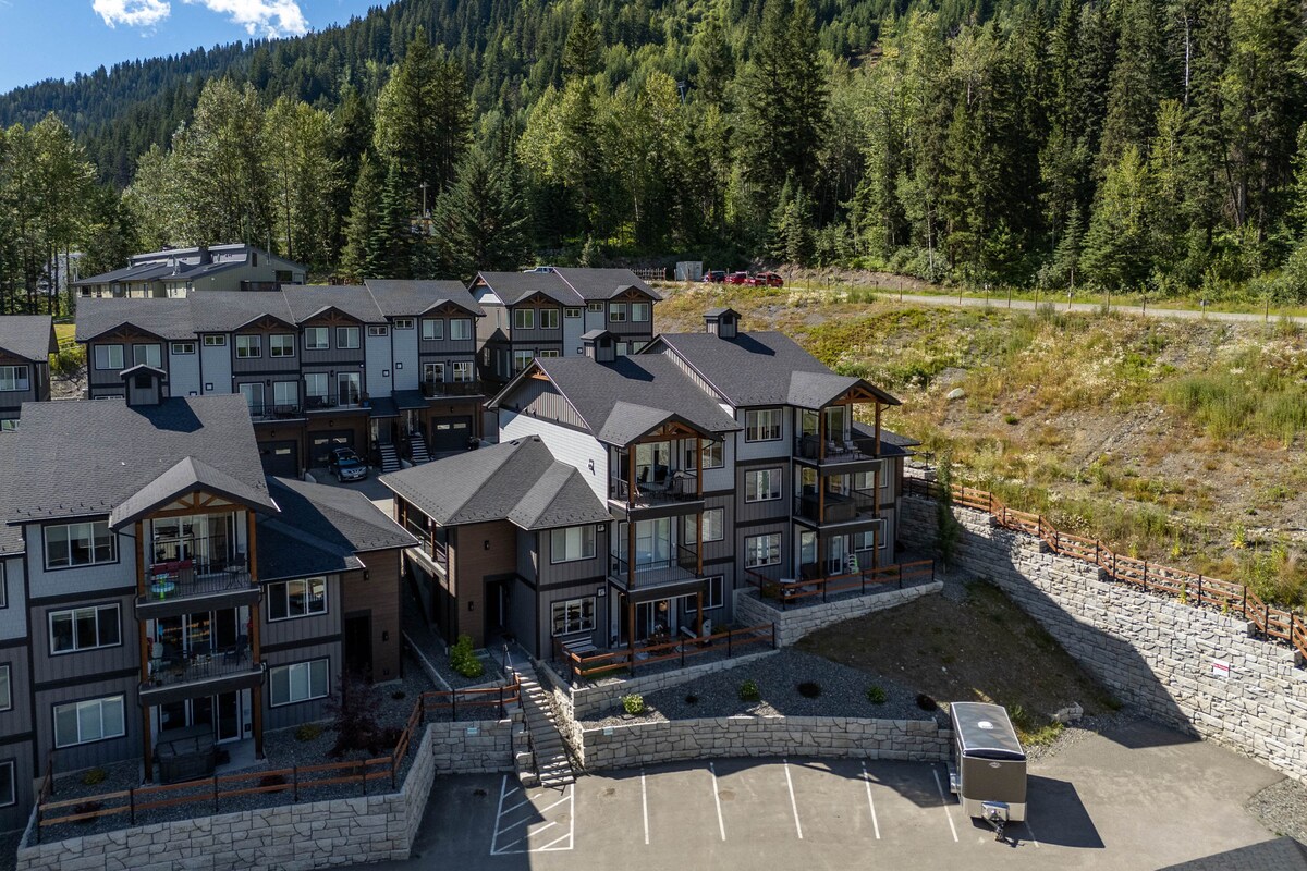 Sveiki atvykę į mūsų ypatingą slėptuvę kalnų kaime Sun Peaks. Mūsų du miegamieji, vienas vonios kambarys, kampinis būstas yra pačioje kaimo širdyje, su puikia prieiga prie slidinėjimo trasų. Mūsų namuose yra dvigulė lova pagrindiniame miegamajame ir dviaukštė lova antrame miegamajame, taip pat dvigulė sofa-lova svetainėje. Atvykite ir leiskitės į atpalaiduojantį tempą, švarų kalnų orą ir šeimai palankią atmosferą. Saulės viršūnės garsėja. Augintiniai laukiami!