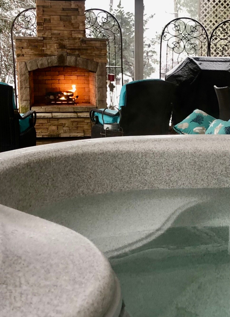 „Salty Mermaid Waterfront“, sūkurinė vonia, židinys