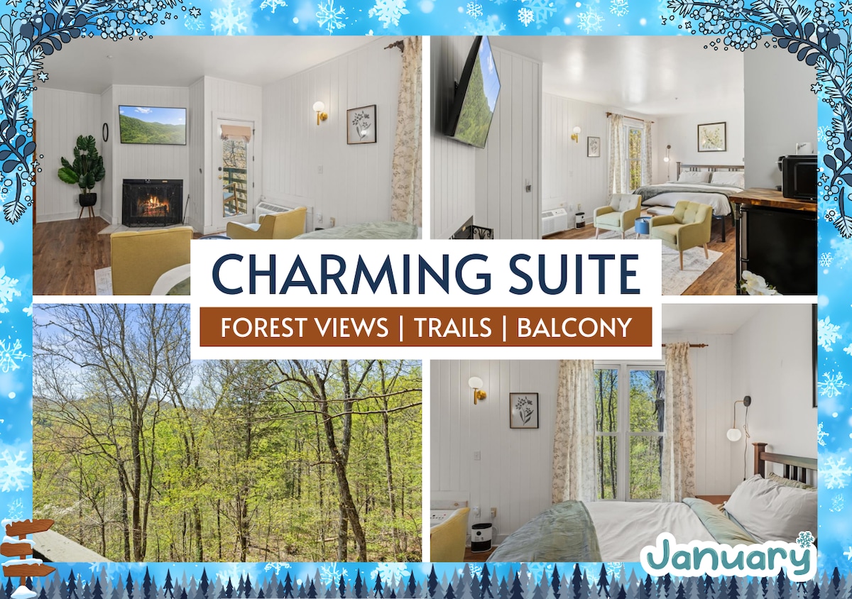 Nenorėsite palikti šio žavingo, išskirtinio būsto. „Blue Ridge“ apartamentuose yra privatus balkonas ir įėjimas arba pagrindinis įėjimas į mūsų didįjį terasą. Apartamentuose yra visa virtuvė ir pilno dydžio šaldytuvas. Graži dvigulė rąstinė lova ir miegamoji sofa-lova. Atsipalaiduokite priešais ugnį savo mielose kėdėse rankose. Mėgaukitės vaizdu iš lovos arba privačiu balkonu. Mėgaukitės nemokamu kavos baru Didžiajame kambaryje.