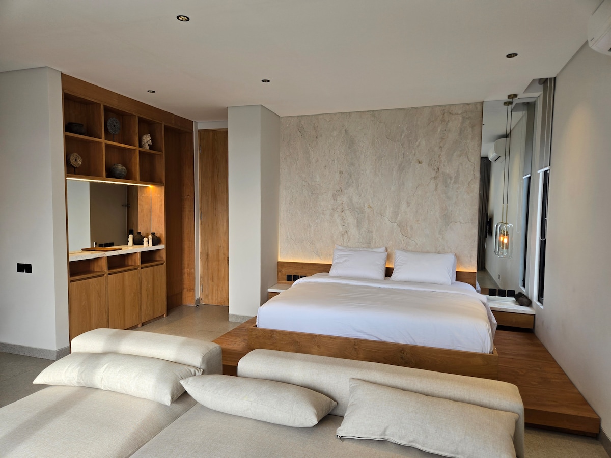 Welcome to Lumix Residence, a boutique-hotel retreat featuring four elegant apartments surrounded by tropical charm. Refresh yourself in our spacious marble pool, filled with crystal-clear mountain water, and experience true relaxation in a serene natural setting. Unwind on our rooftop terrace overlooking peaceful rice fields and sea views, the perfect spot to watch the sunrise with your morning coffee or take in the sunset as the day fades away.