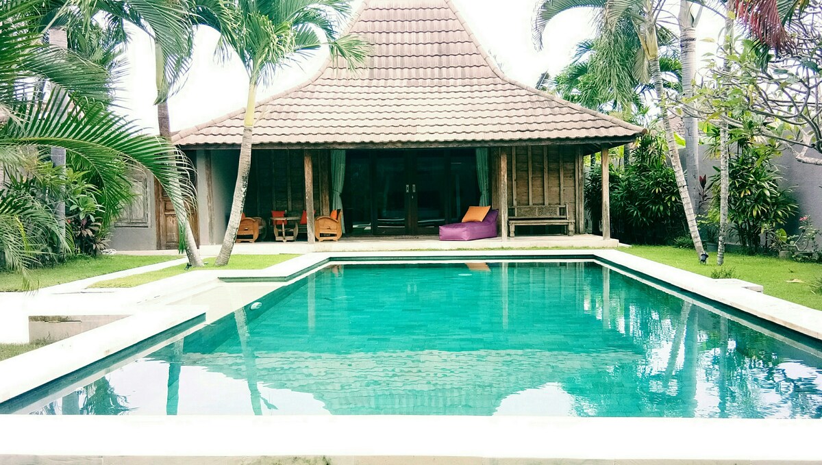 Mūsų žavingas namas, pastatytas tradiciniu stiliumi, yra tarsi rami oazė. vešlūs atogrąžų sodai, atpalaiduojanti atmosfera ir daug vietos visai jūsų šeimai atsipalaiduoti. Pats namas yra senesnis nei 50 metų, tačiau jis su meile renovuotas, kad sukurtų patogią erdvę. Mes netgi įtraukėme tradicinę statybos praktiką, naudojant kūno matavimus ir čakrų vietas, kad užtikrintume harmoningą energijos srautą. Tai puiki vieta išvykai iš Balio šeimoms, ieškančioms ramaus pabėgimo.