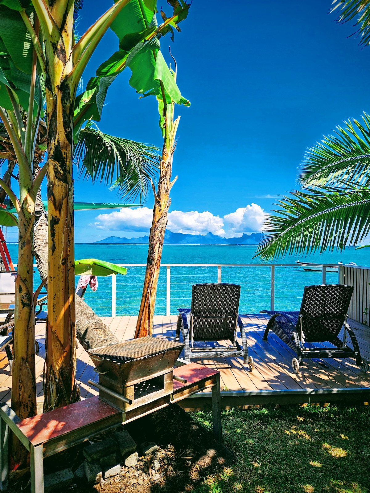 Atskiras vienaaukštis namas su privačiu vonios kambariu ir terasa su vaizdu į marias, esantis pagrindinio namo sode. Yra nardymo įranga, baidarės ir irklentė, kad galėtumėte tyrinėti marias prie koralinio rifo. Vienaaukštis namas yra labai gerai įrengtas ir turi Wi-Fi. Jums ypač patiks vaizdas į Moorea, kai pabusite su jos rožiniais atspalviais ir nuostabiais saulėlydžiais. Saugumo sumetimais negalime apgyvendinti vaikų iki 12 metų.
